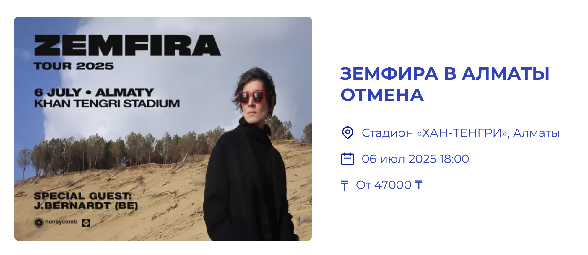 Поклонники Земфиры, купившие билеты на её концерт, который должен был состояться 6 июля в Алматы, столкнулись с проблемой: вернуть сервисный сбор за отменённое мероприятие оказалось невозможно. Билетный оператор Zakazbiletov.kz оставил себе 10-процентную комиссию, ссылаясь на условия оферты. Это вызвало волну негодования. Orda.kz выясняла, законно ли это.