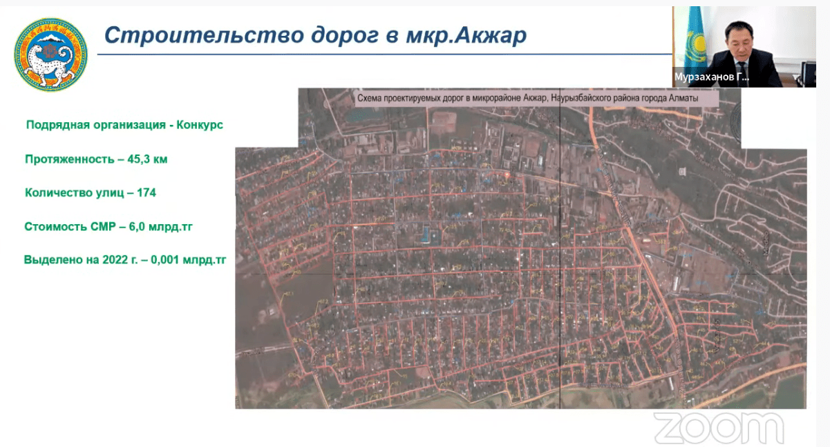 В акимате планируют и строительство новых дорог в микрорайоне Ажар, Шапагат (Заря Востока), Боралдай, Теректы, Шугыла и Маяк. К строительству дорог приступят после обеспечения микрорайонов инженерными сетями.