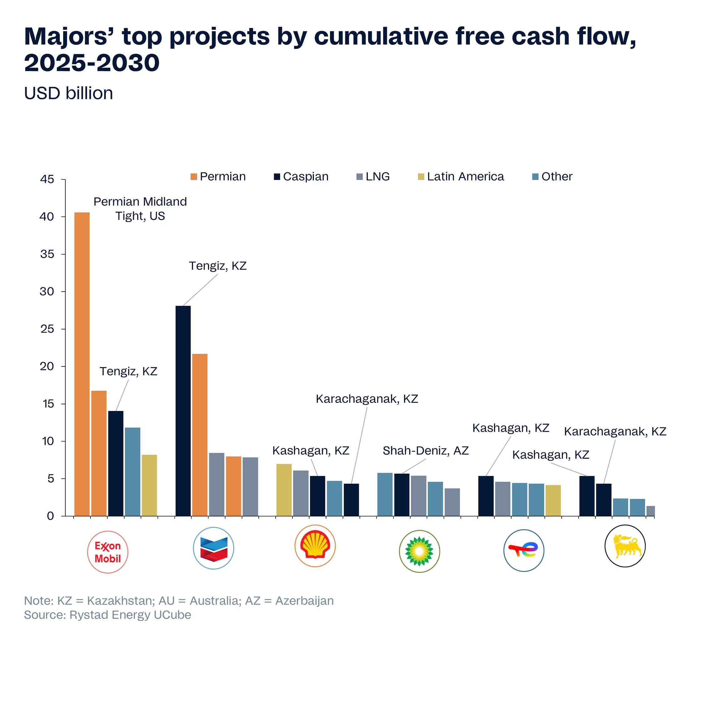 Chevron, ExxonMobil, Shell, Total, ENI — список звучит как топ мировых компаний, но на самом деле это топ тех, кто лучше всех умеет зарабатывать на Казахстане. Так считает Олжас Байдильдинов, проанализировав статью Rystad Energy: