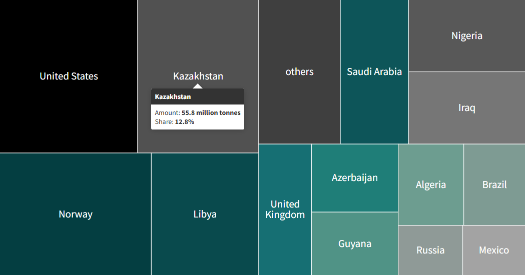 Казахстан вырвал у Норвегии второе место по поставкам нефти в Европу