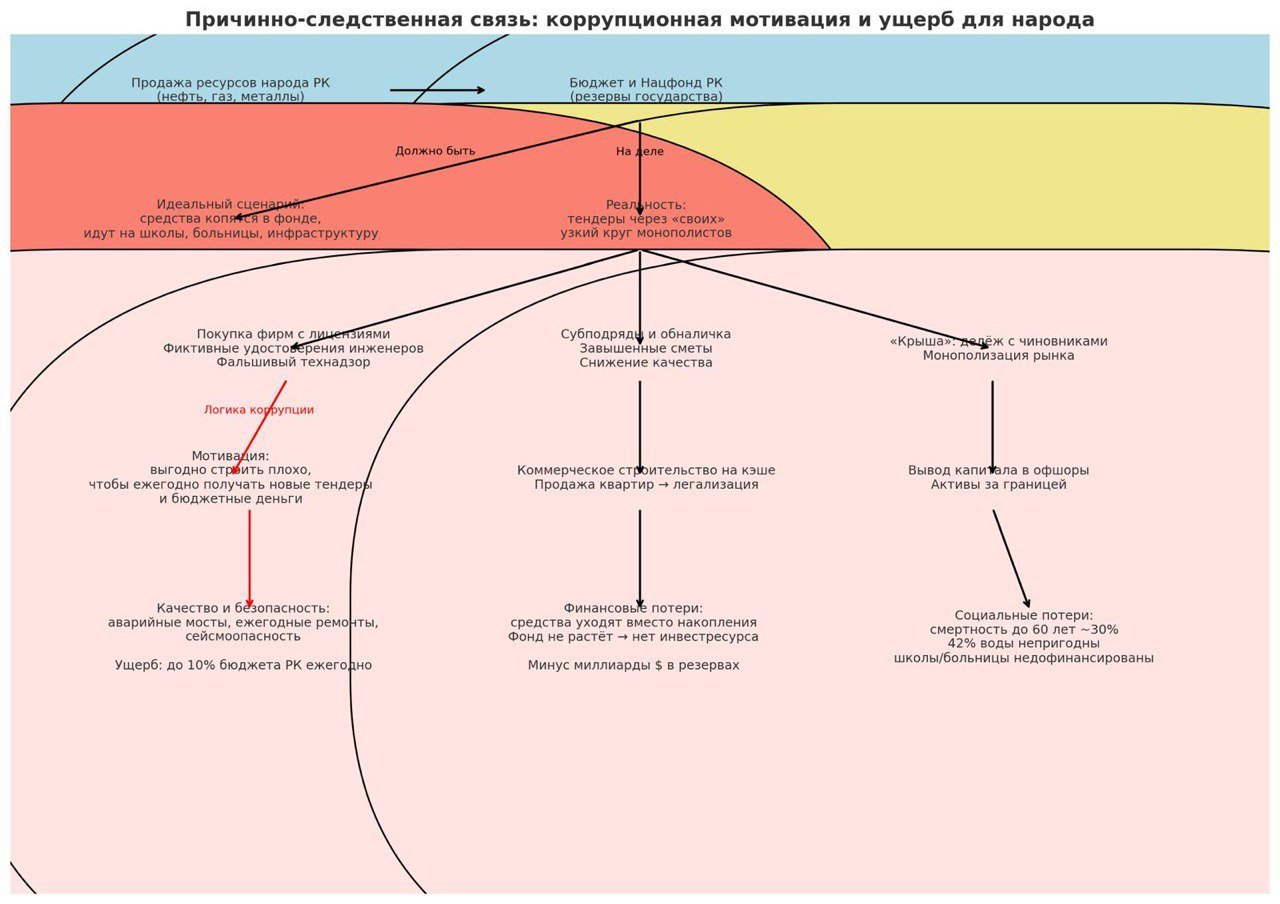 Президент Токаев не раз говорил: коррупция убивает страну, а граждане должны жить лучше. Но красивые слова не спасут, если мост рушится или дорога проваливается.