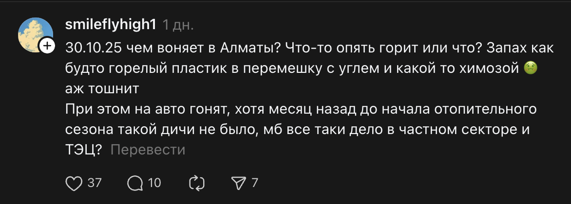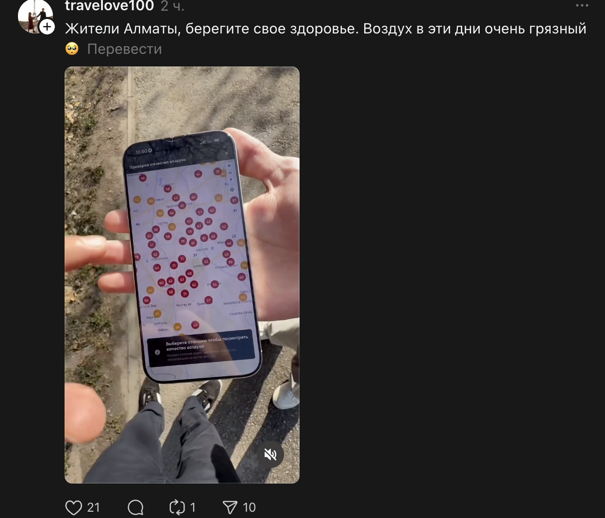 Алматы занял четвертое место в мире по загрязнённости воздуха. Департамент экологии «не обнаружил отклонений от норм», но жители города говорят, что стало трудно дышать, так что — задыхаемся и машем.