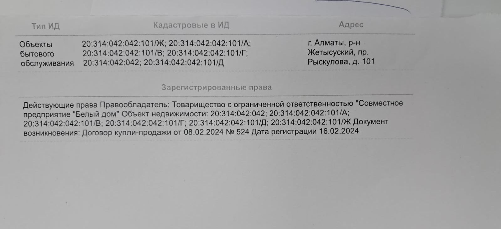 Вообще на пресс-конференции много заявлялось о нарушениях на «Казахфильме». Например, по словам председателя Союза кинематографистов Казахстана Адая Абельдинова, киностудия продала здание по адресу проспект Рыскулова,101. В качестве подтверждения на пресс-конференции привели вот этот документ.