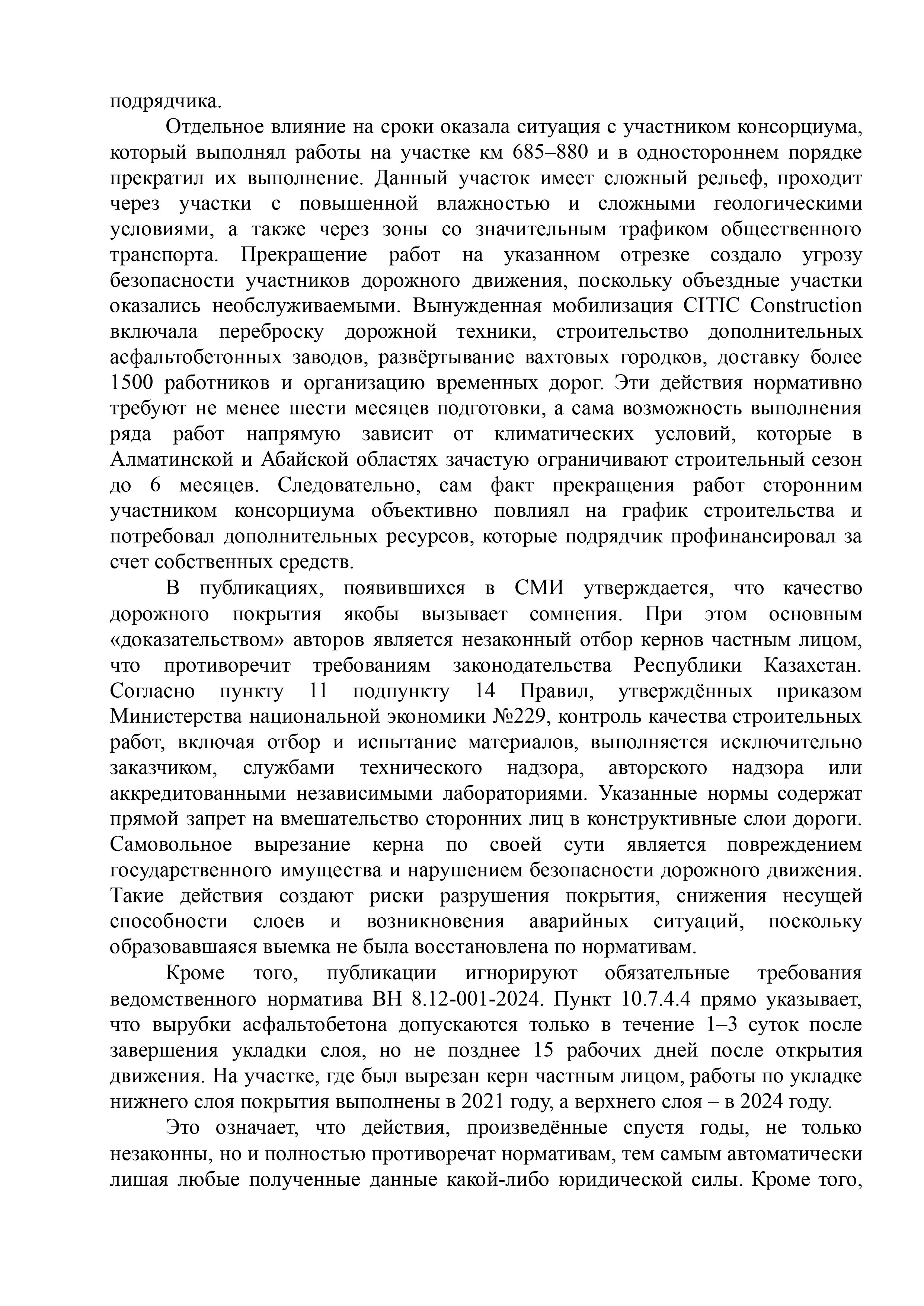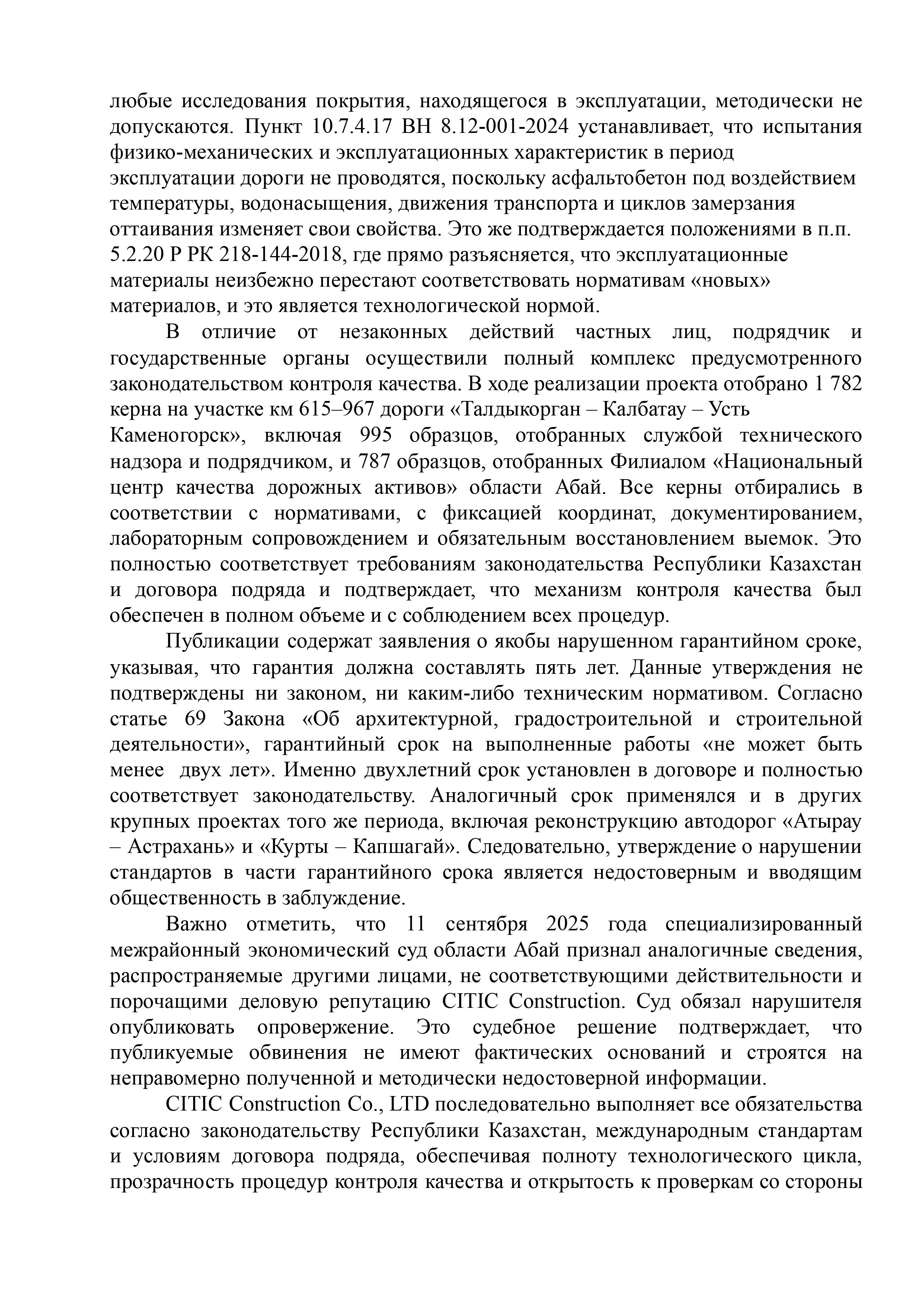 В редакцию Orda.kz поступило письмо от китайской компании CITIC Construction, в котором она прокомментировала критику общественника области Абай Роллана Машпиева в отношении качества работ на трассе Алматы — Усть-Каменогорск.