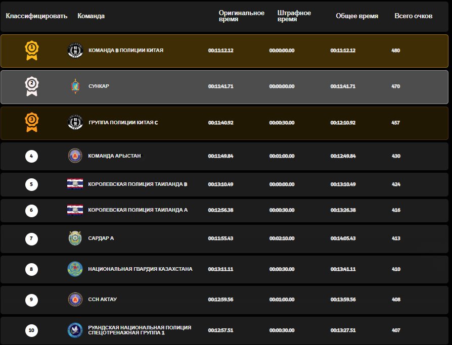 В десятку лидеров также попали другие казахстанские команды силовиков — две команды КНБ («Арыстан» и «ССН Актау»), «Сардар А» (СГО) и Национальная гвардия МВД РК.