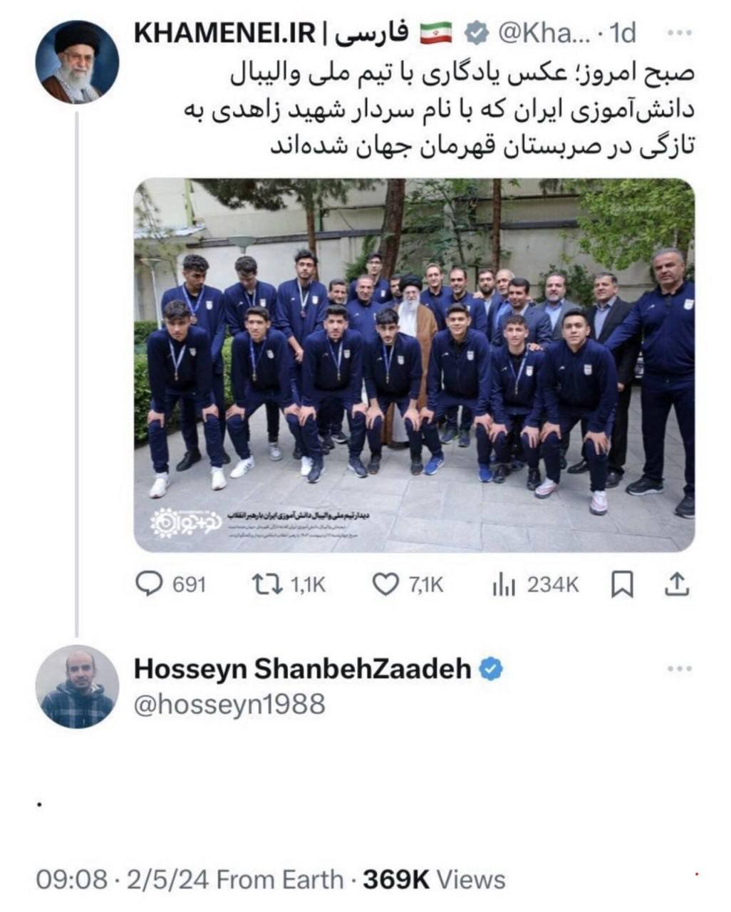По мнению защиты, дело возникло после того, как Шанбехзаде оставил комментарий с точкой под постом верховного аятоллы Исламской Республики Али Хаменеи в социальной сети X. Этот минималистичный комментарий неожиданно собрал больше лайков, чем сам пост аятоллы, что привлекло внимание властей. Вскоре блогер был арестован, а его аккаунт заблокирован.