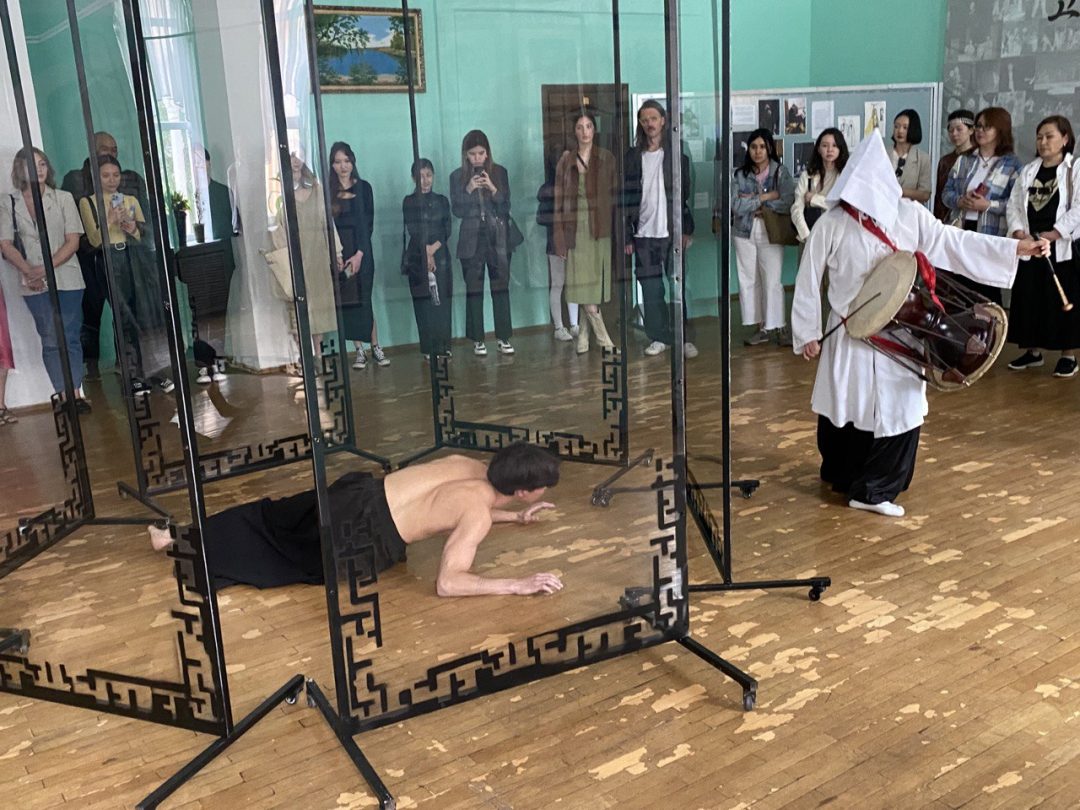 Действие спектакля начинается в красивом фойе театра с участием традиционного корейского барабана и юноши – самого Дамира Смаилова. Он и автор постановки, и её активный участник в качестве танцовщика.