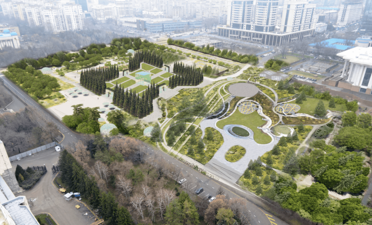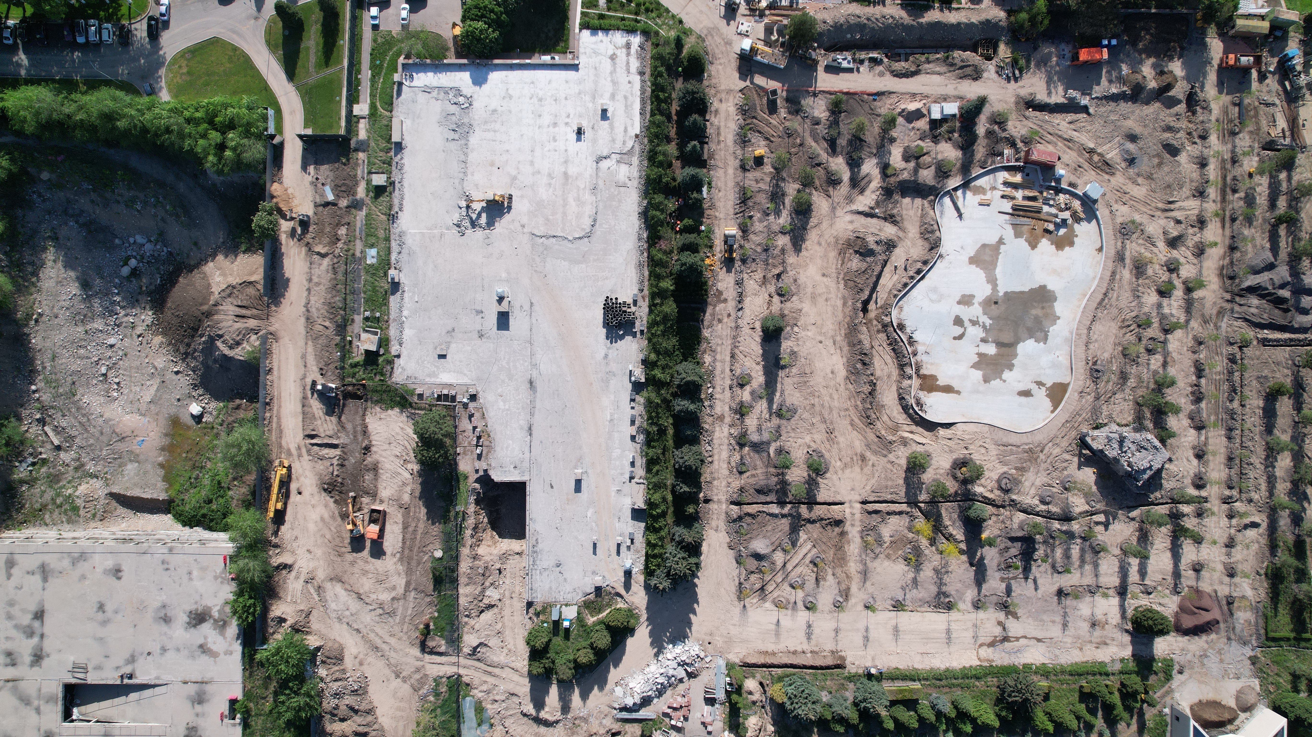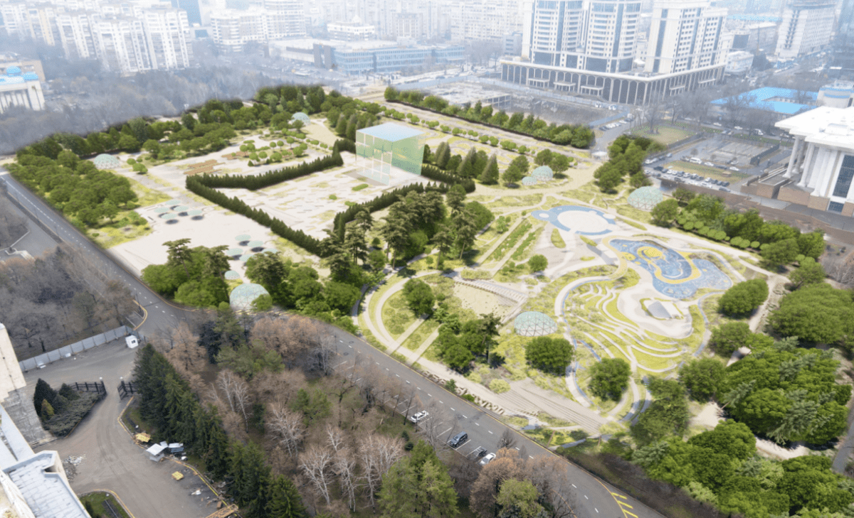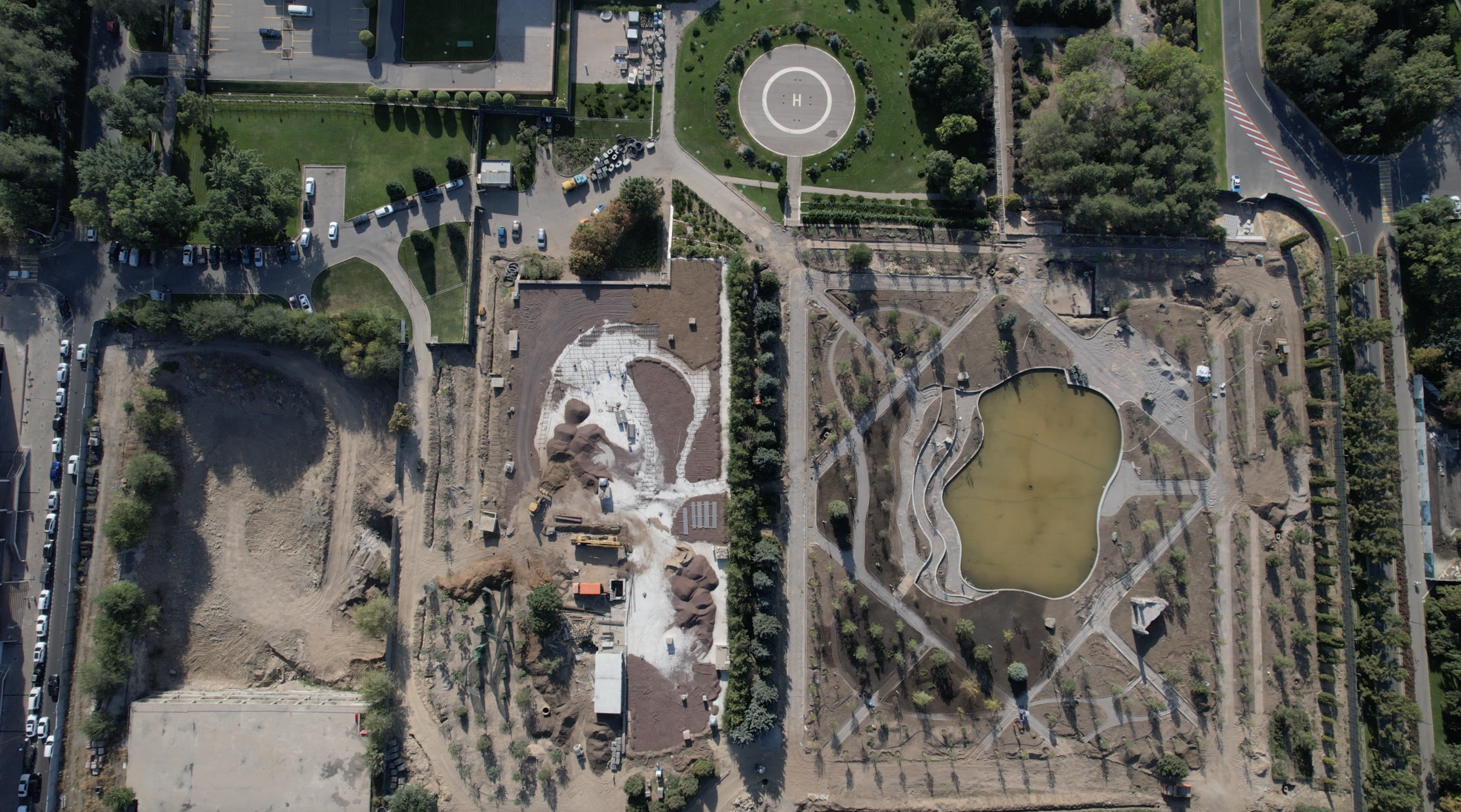 В конце апреля журналисты Orda.kz с помощью дрона заглянули за забор недавно начавшейся стройки. Тогда было сложно сказать, будет ли похож будущий сквер на один из представленных в 2022 году рендеров или нет.