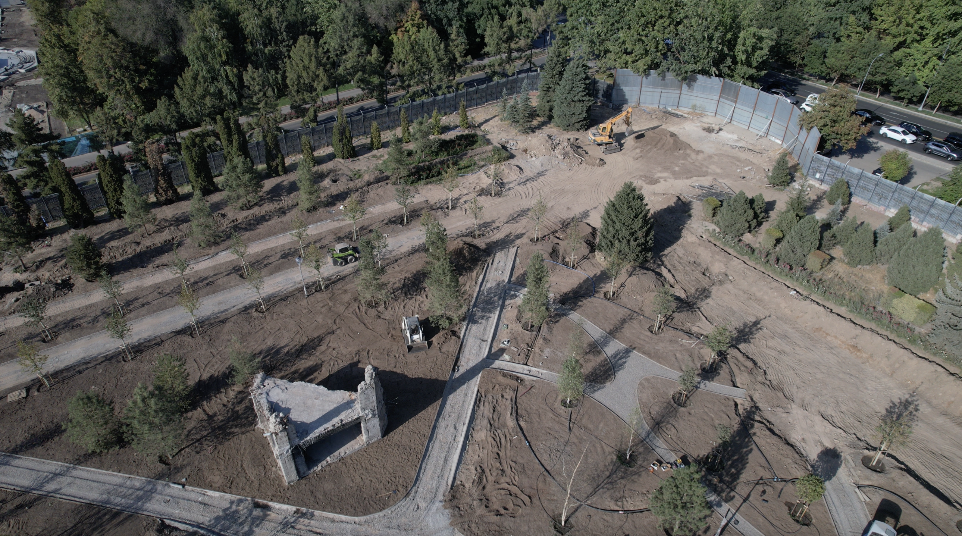 Когда мы называем стройку на месте бывшей президентской резиденции долгожданной, мы совершенно не ёрничаем. Разбить сквер в этом месте решили ещё весной 2022 года, когда стало понятно, что восстановить сожжённую во время Кантара резиденцию не получится. Но полноценно за него взялись только весной 2025-го.