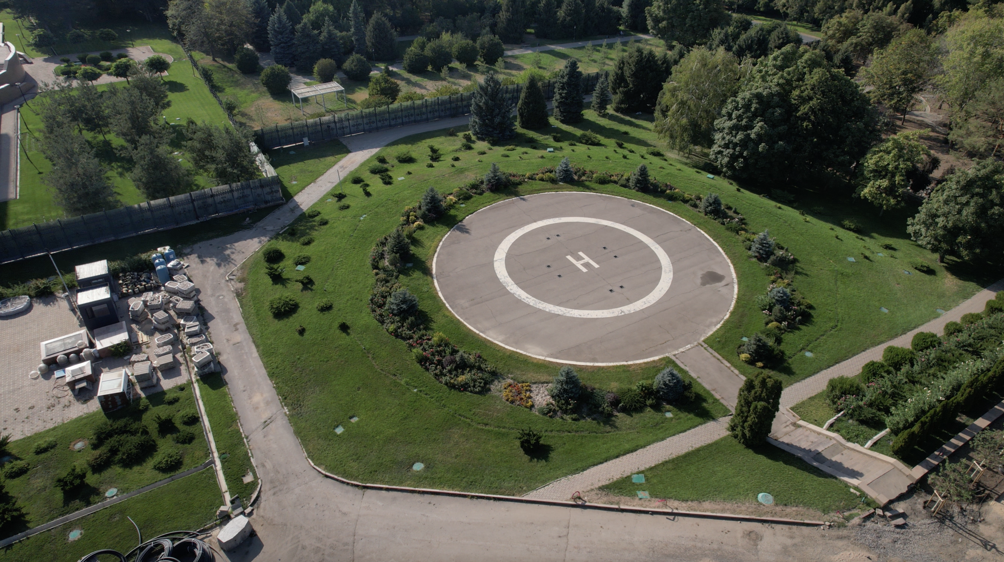 Что осталось неизменным, так это обрамлённая газоном вертолётная площадка на западе будущего сквера.