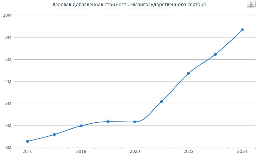 До 2020-го добавленная стоимость квазигосударственных предприятий оставалась более-менее на одном уровне, а затем начался стабильный и бурный рост: