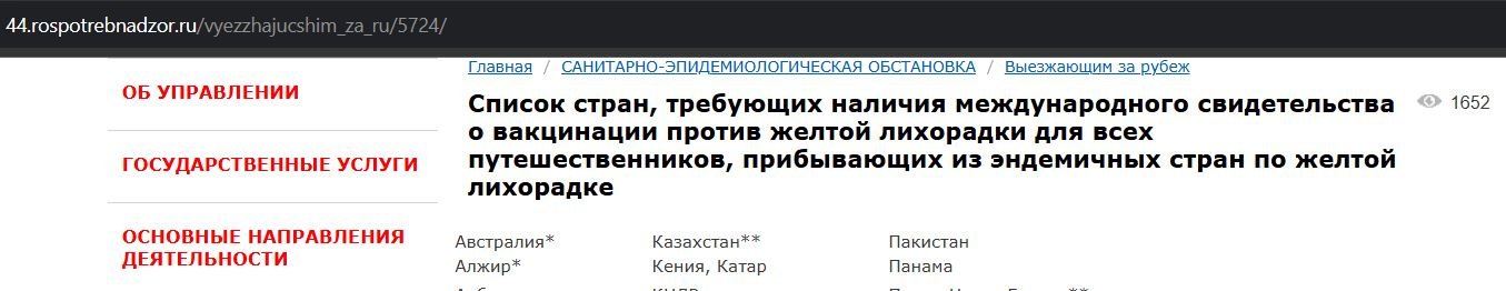 Зато жёлтая лихорадка упоминается в памятке для граждан Казахстана, выезжающих за границу, опубликованной на сайте eGov. Там сказано: