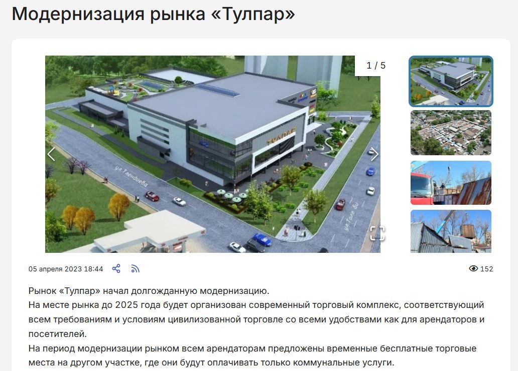 Напомним, несколько лет назад городские власти заявили, что «Тулпар» устарел, обветшал и нуждается в реконструкции, на время которой арендаторам придётся поторговать в другом месте. Последним эта идея крайне не понравилась, и в марте 2023 года они даже устроили митинг перед акиматом, требуя оставить их базарчик в покое.