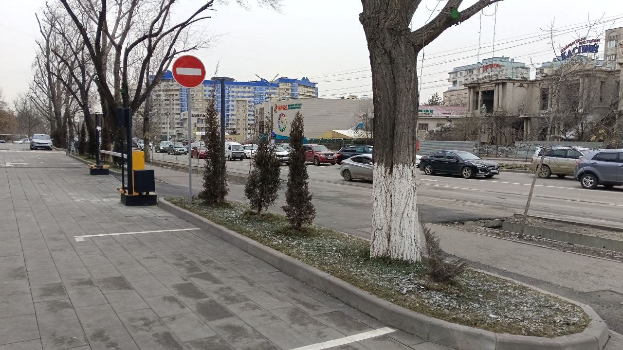 Согласно ответу акимата, застройщик должен был провести озеленение на территории. Это было сделано, но его качество под вопросом. Во-первых, под озеленение были выделены маленькие участки. Во-вторых, вокруг ЖК высадили по большей части маленькие хвойные породы (хотя есть и немного лиственных), которые не рекомендуется сажать вдоль проезжих дорог.
