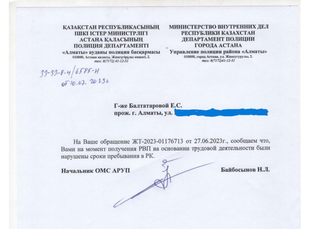 Беда пришла откуда не ждали. Когда пришел срок продлевать РВП, Балтатарова столкнулась с проблемами, которые сначала показались обычным сбоем в системе, но в итоге в очередной раз перевернули все планы на относительно безопасное существование в Казахстане. Теперь угроза депортации стала реальнее в разы.