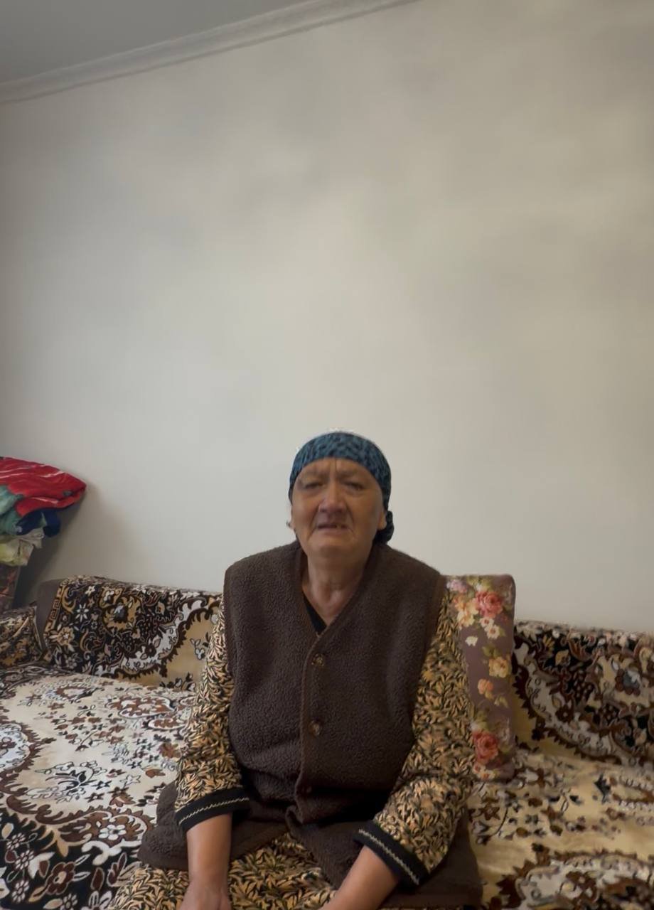 После этого корреспондент направился из дома Закира в дом погибшего Каната. Его мать живёт в селе Каракемер. Пожилая женщина, потерявшая единственного сына, является инвалидом второй группы и осталась одна в пустом доме. Едва мы вошли, Нуржамал апа не смогла сдержать слёз.