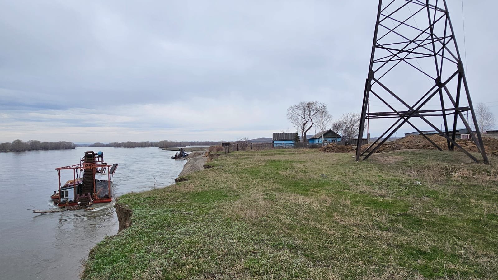 Тревожная ситуация сложилась в посёлке Прапорщиково Восточно-Казахстанской области, сообщает Orda.kz. С весенним подъёмом воды на ближайшей к берегу улице Отан грунт с грохотом стал обваливаться в Иртыш. Несмотря на уже стартовавшие работы по берегоукреплению, сельчане опасаются, что опора ЛЭП и их дома рухнут в реку.