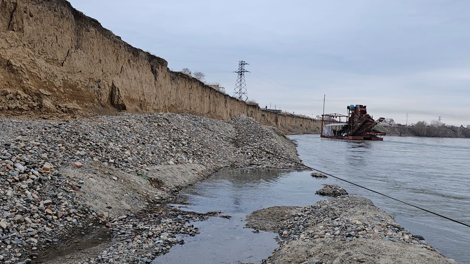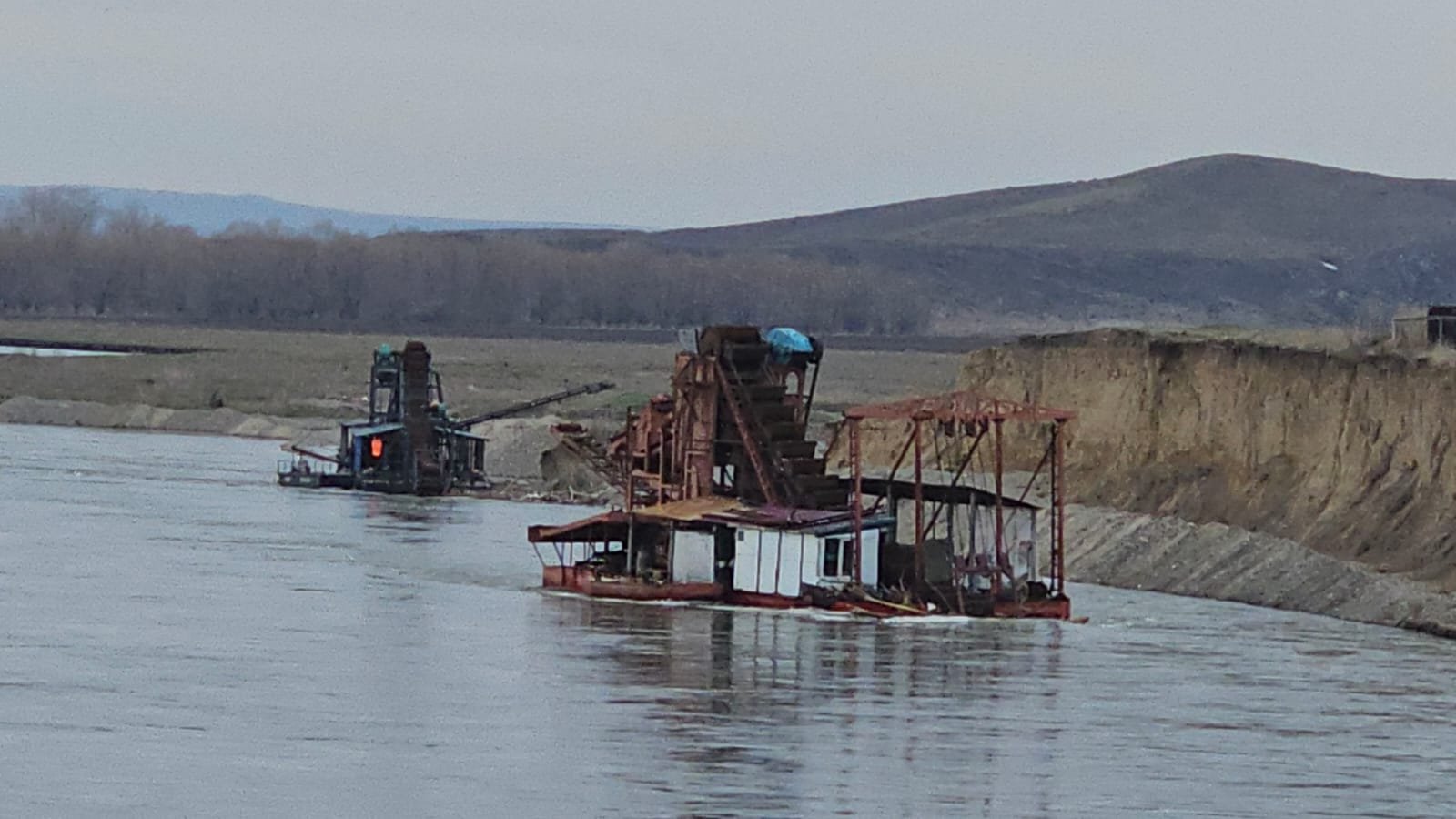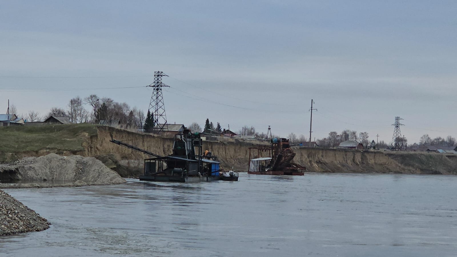 По его словам, когда они только переехали в село, на месте, где сейчас стоит драга, была дорога, и по ней ездили автомобили — сейчас это река.