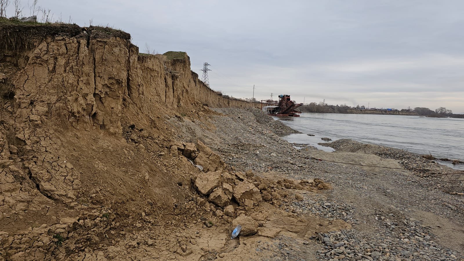 «У нас случилась такая беда. Берег размывает, нам обещают его укрепить, но пока работы ведутся неактивно. В прошлом году берег отсыпали, эта его часть выдержала натиск стихии, остальная продолжает валиться. Когда я переехал сюда, то до опоры было ещё 20 с лишним метров, теперь осталось около восьми. Нам обещают, что в этом году работы по берегоукреплению продолжатся. На реке стоят драги. Мы надеемся, но пока всё страшно и опасно, берег осыпается у нас каждый день. За прошлый год упало минимум семь метров», рассказал Игорь.