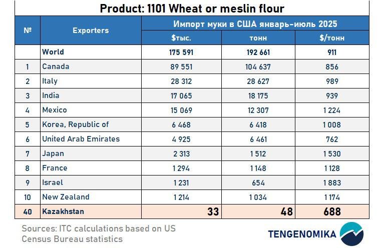 Как обратил внимание экономист Руслан Султанов в своём телеграм-канале Tengenomika, информация о «выдающемся успехе» костанайских мукомолов оказалась сильно преувеличена. Во-первых, попытки расширить рынок сбыта казахстанской муки ощутимых результатов пока не принесли. Во-вторых, объёмы поставок в США — мизерные.