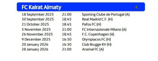 Для «Кайрата» это дебют в основном раунде Лиги чемпионов — и внимание болельщиков уже приковано к календарю и соперникам команды.