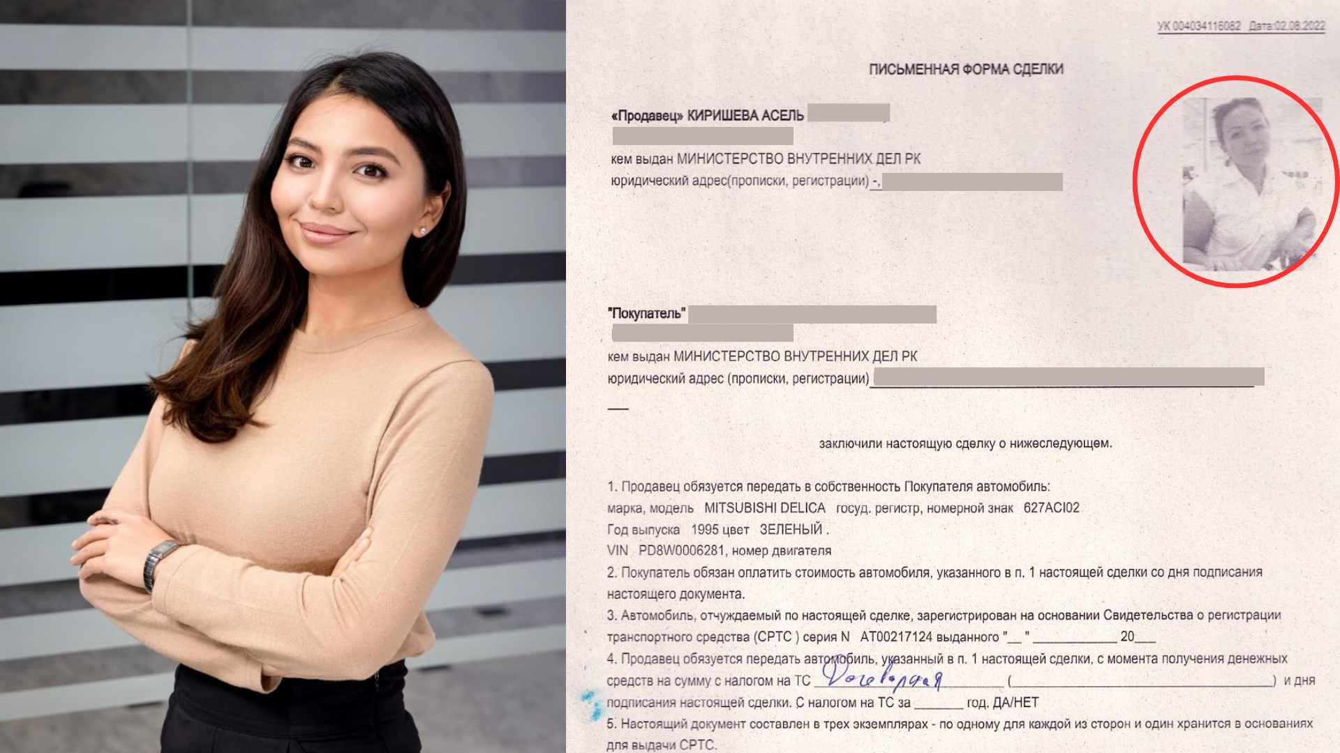 Асель предоставила нам все документы, по которым её движимое имущество перешло в руки посторонних людей. На фото отчётливо видно, что настоящая и лжевладелица автомобиля совершенно не похожи.