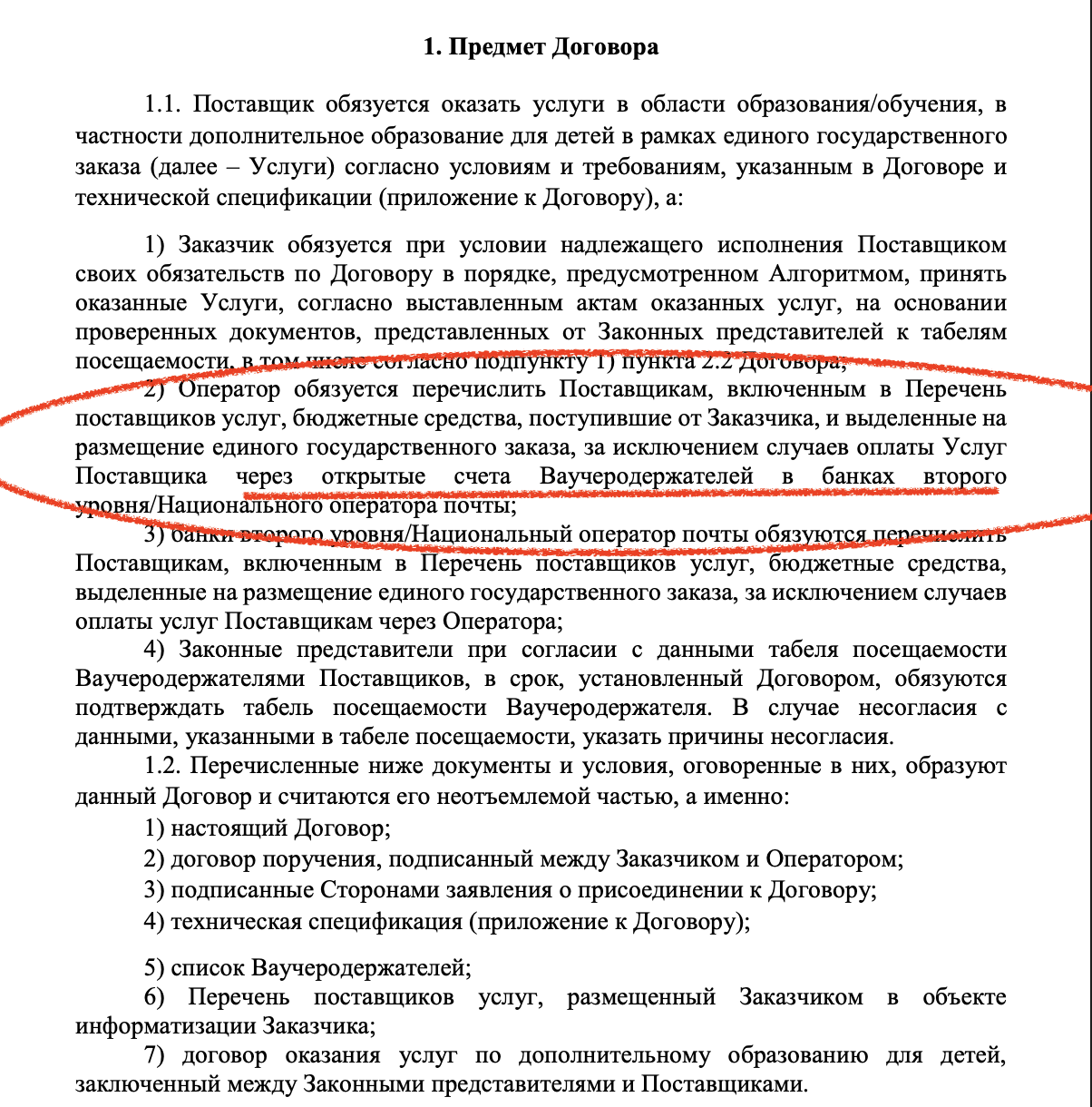 Поставщик (кружки и секции) — юридическое лицо или индивидуальный предприниматель, независимо от формы собственности, ведомственной подчинённости, типов и видов, кроме организаций образования.