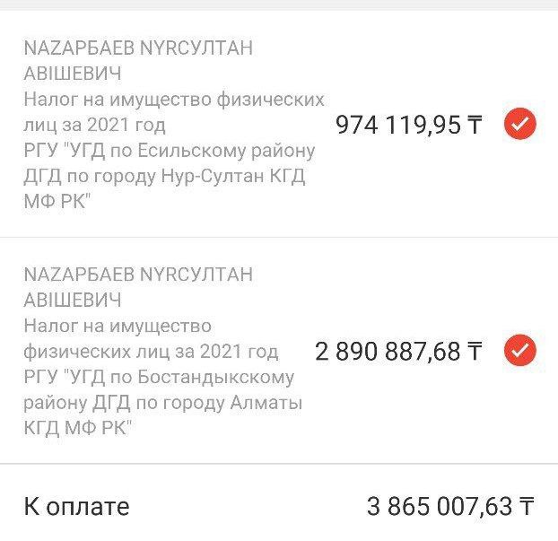 Экс-президент Казахстана должен оплатить налог на имущество. Согласно данным, Назарбаеву принадлежит жилье в Есильском районе столицы и Бостандыкском районе Алматы.