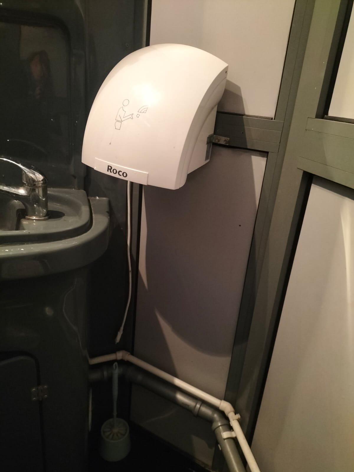 В кабинке тепло, но запах ужасный. В следующем парке уже в центре города туалет более приятный. Для каждого шнура есть своя розетка. А ещё там горячая вода и даже повезло обнаружить тонкий рулончик туалетной бумаги.