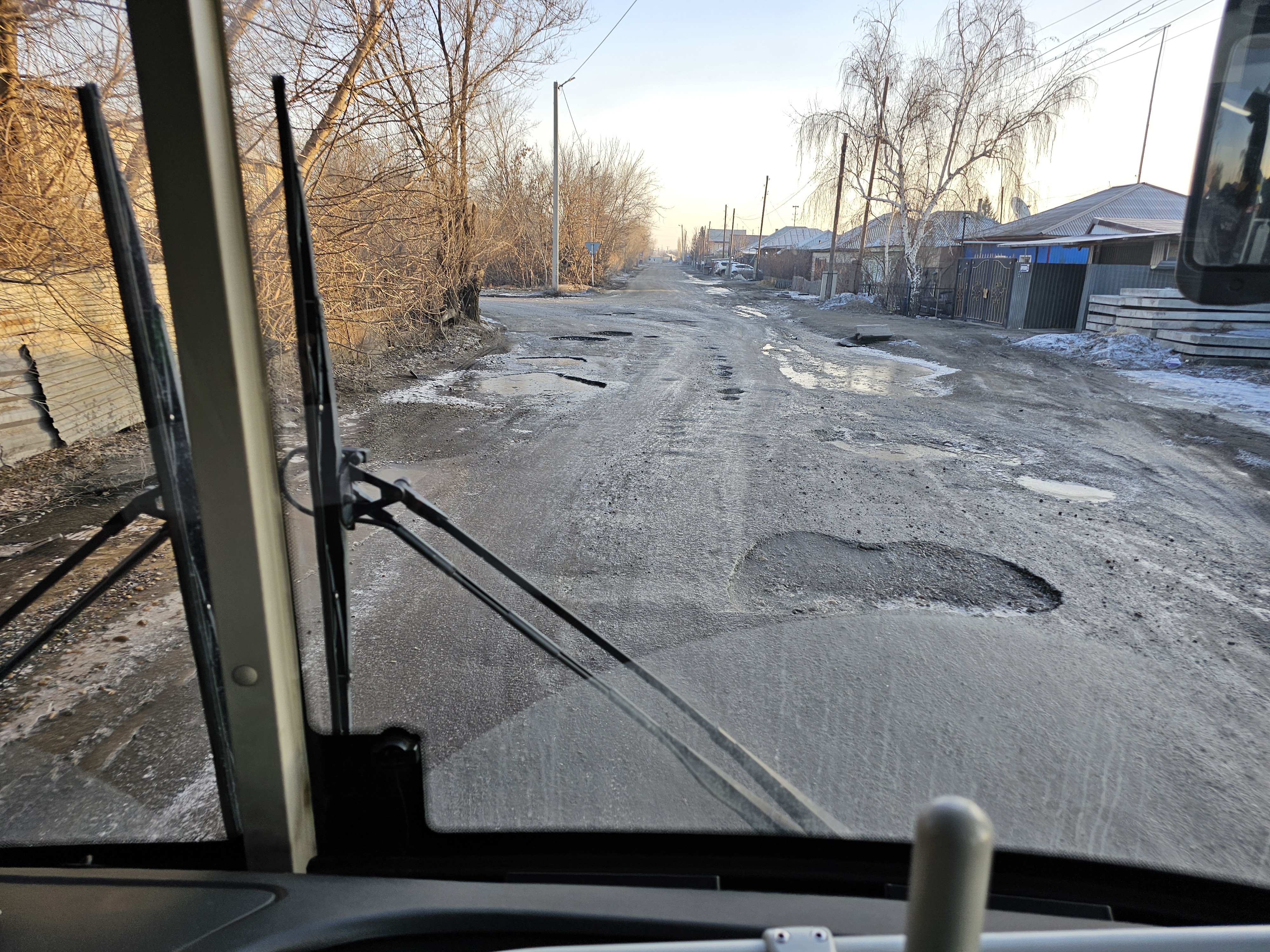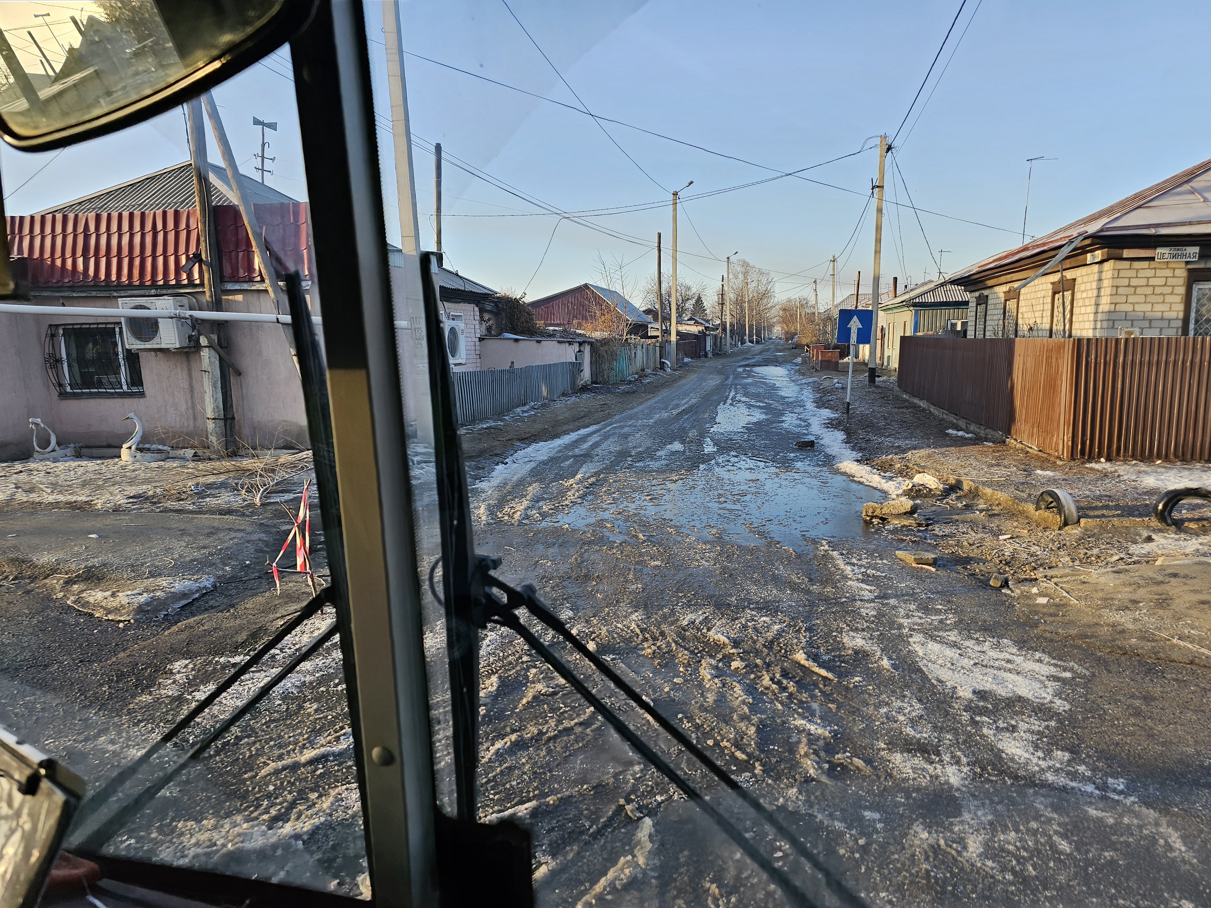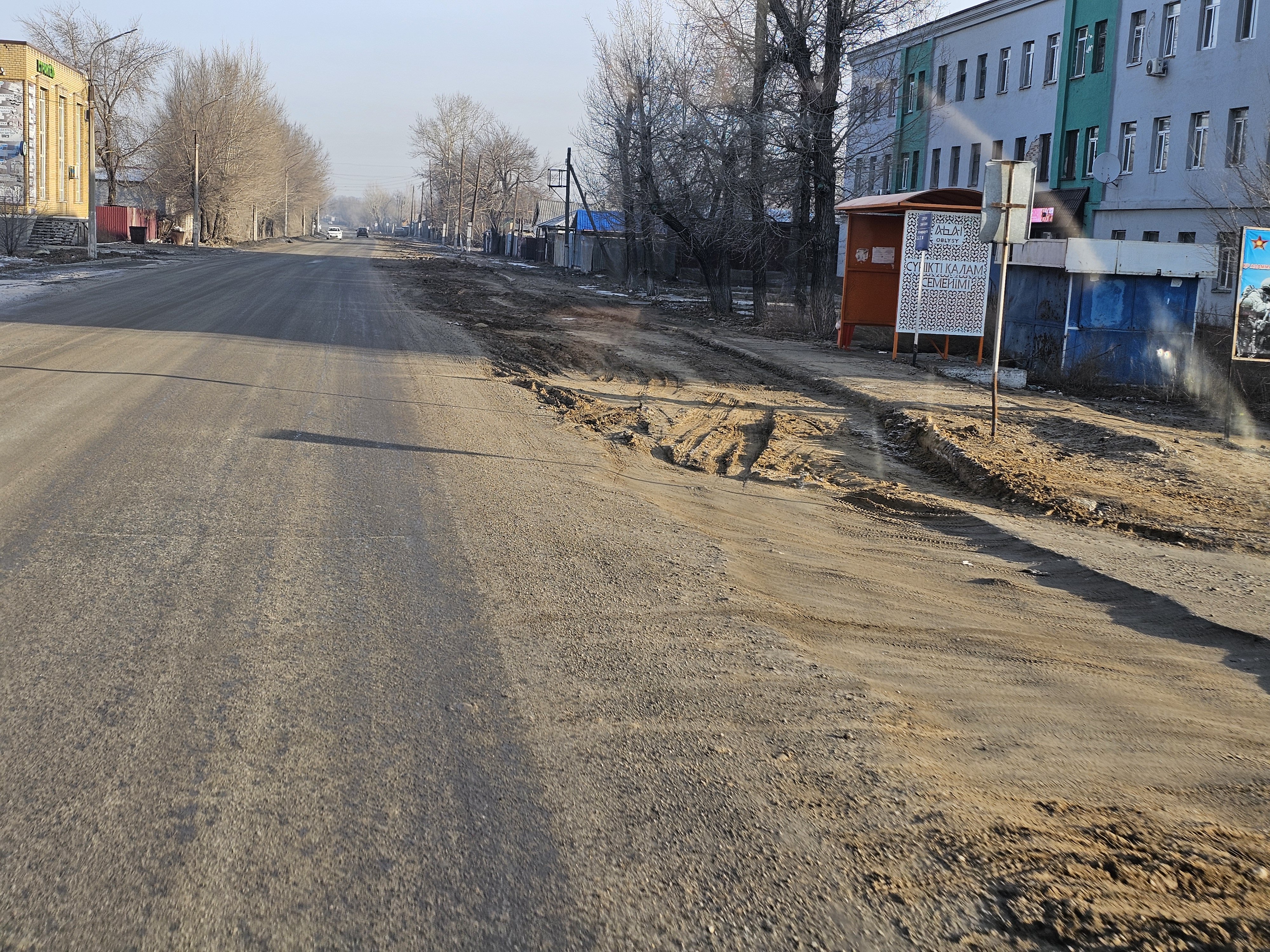 Часть дороги на Затоне изуродована в попытках что-то построить зимой (местные жители утверждают, что это водопровод, строители торопились и не успели привести дорогу в порядок). Это вполне может оказаться правдой. Ранее Orda.kz писала, что чиновники области Абай не успели выполнить поручение президента и ввести в строй до конца 2025 года все начатые проекты водопроводов. Часть незаконченных проектов находится именно в этом районе.