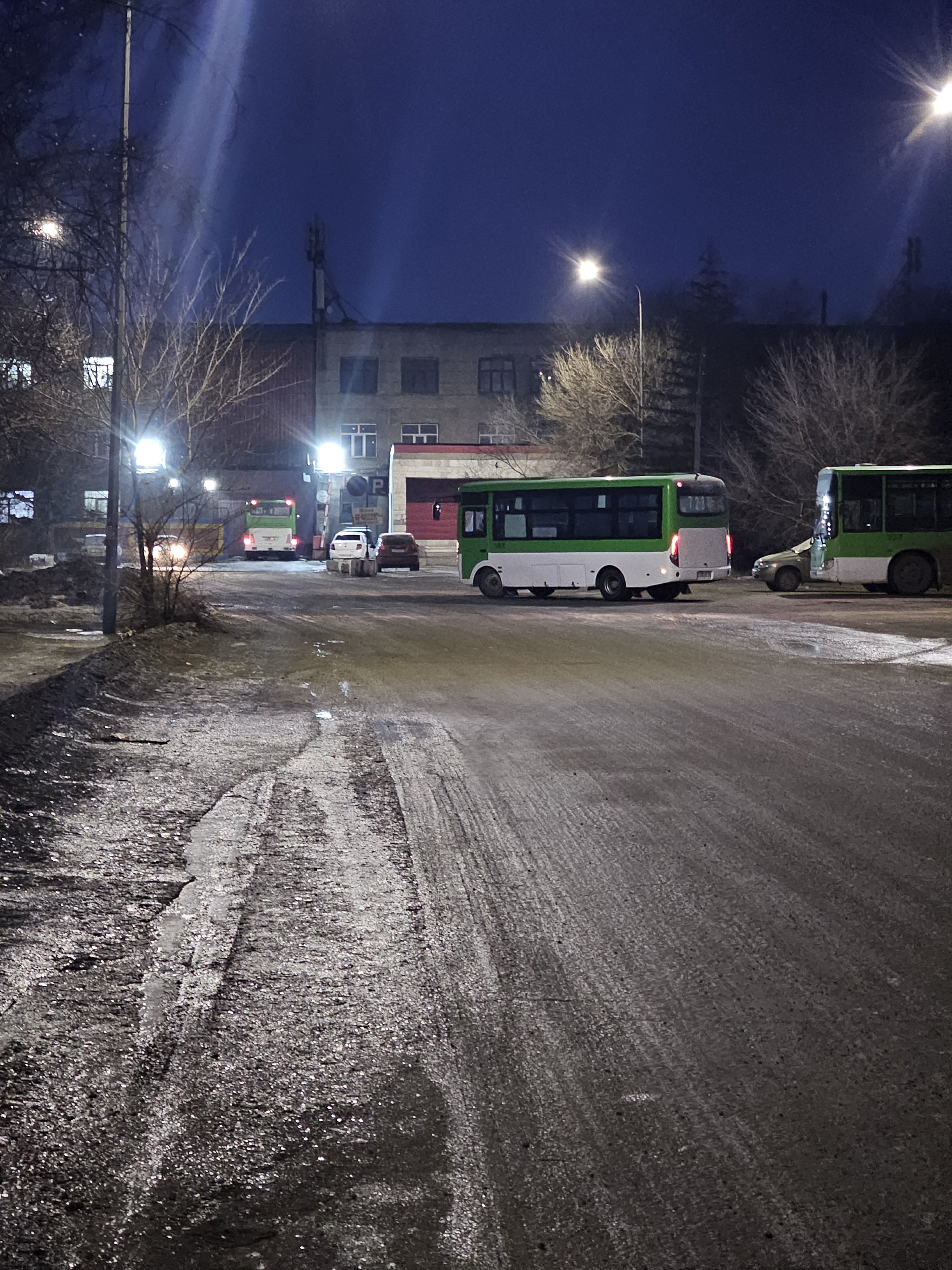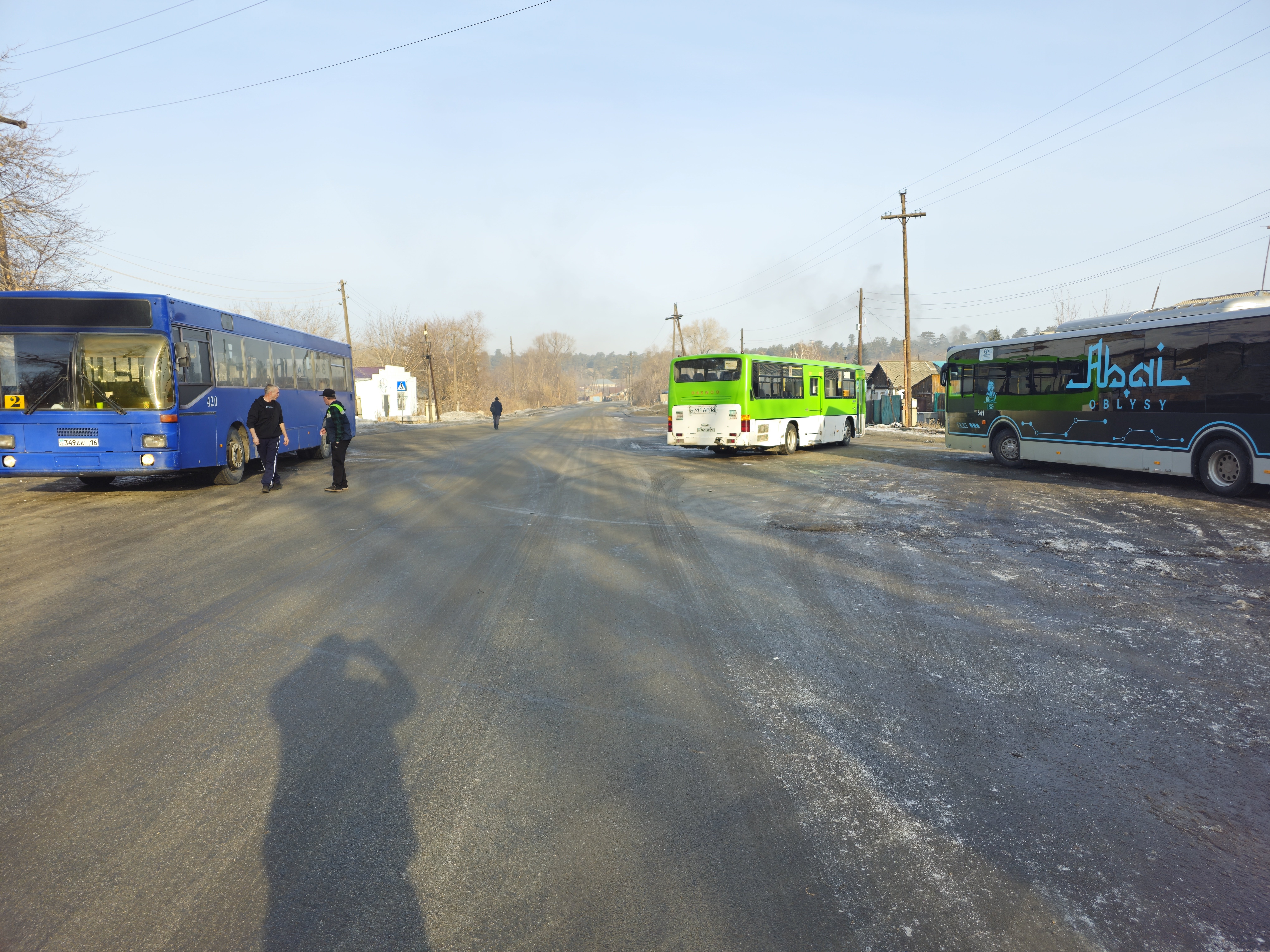 Мы, наконец, приехали на другую конечную остановку. Здесь уже стоит несколько автобусов.