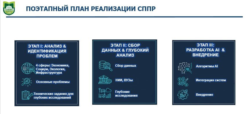 А мозгом этой системы станет система поддержки принятия решений на базе искусственного интеллекта. Именно это позволит перейти от реактивного «тушения пожаров» к проактивному, научно обоснованному управлению. Эта система будет анализировать данные по всем сферам и предлагать оптимальные решения.
