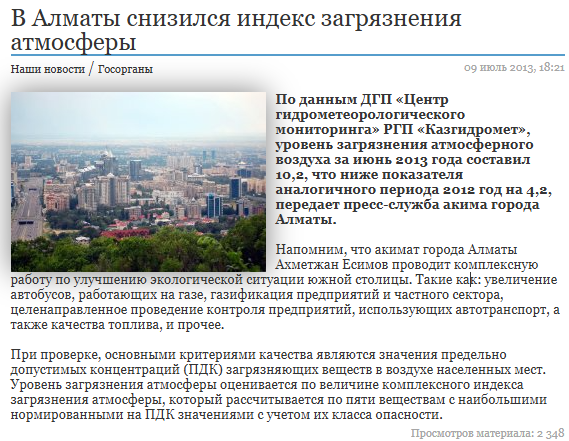 Мысль не новая, ещё в 2013 году тогдашний аким Алматы Ахметжан Есимов заявлял, что акимат успешно ведёт комплексную работу по улучшению экологической ситуации в городе и с каждым годом дела идут всё лучше.