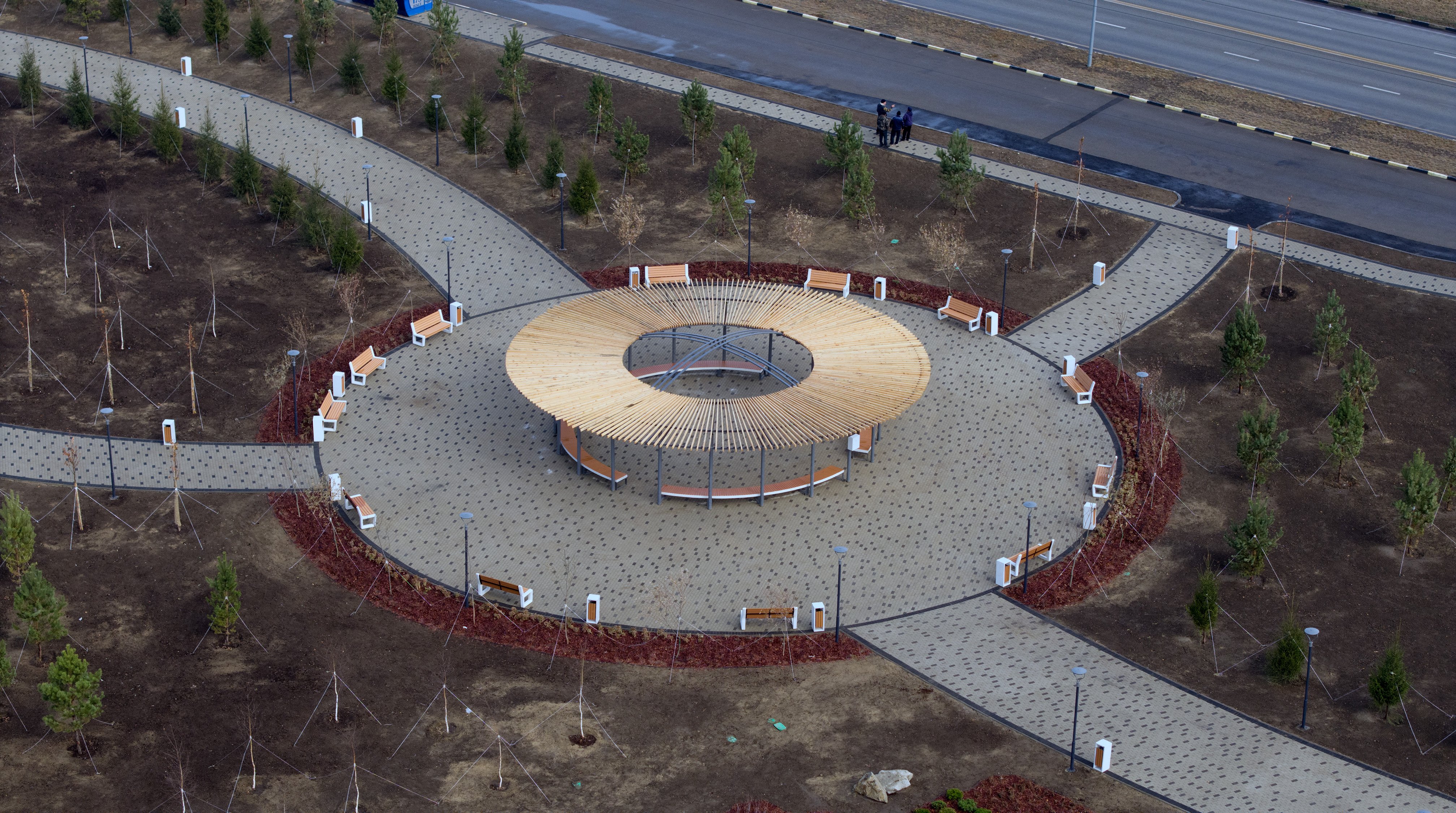 25 октября в Семее в районе Карагайлы открыли новый парк. Он отличается достаточно оригинальным дизайном, с высоты птичьего полёта видно, что сквер выполнен в виде юрты, обрамлённой причудливыми завитками в виде национальных узоров.