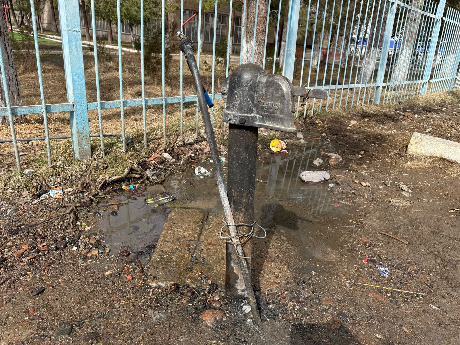 «Здесь был откормочный совхоз. Водопровод был, на улицах свет, асфальт. Сейчас от всего этого сохранился лишь единственный источник — это фонтан, который поднимается аж с глубины 700 метров. Это чистейшая вода. Но, к сожалению, у нас она единственная. Дальше её нет. Мы боимся, что она может закончиться. Ведь любой ресурс может исчерпаться. Если это случится, люди останутся без воды. А что тогда делать?» сетует аксакал.