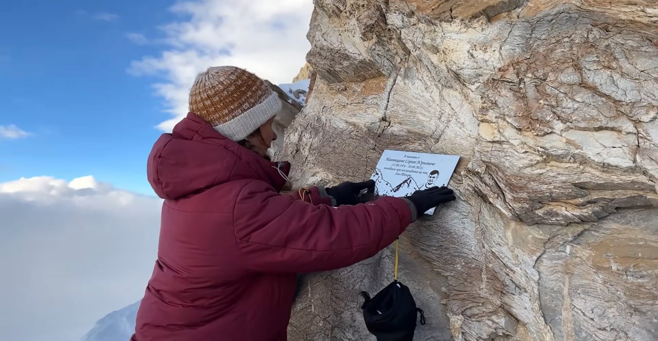 Год спустя она вновь поднялась на вершину, чтобы установить мемориальную табличку. Этот эпизод лёг в основу документального фильма Дмитрия Синицына «Остаться с Хан-Тенгри».