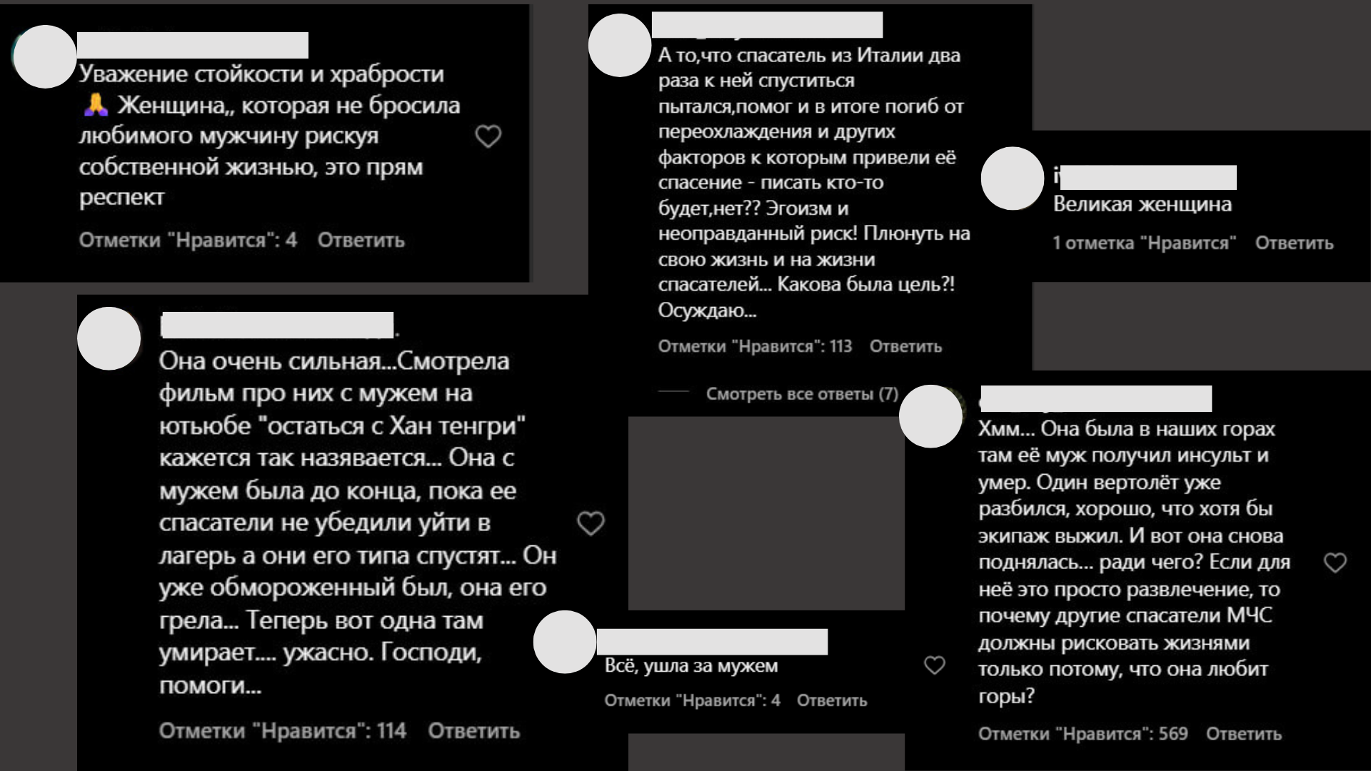 «При высадке спасателей вертолёт совершил жёсткую посадку и перевернулся, три спасателя травмированы. Всех спасли с Победы, кроме Наташи»,вспоминает альпинист.