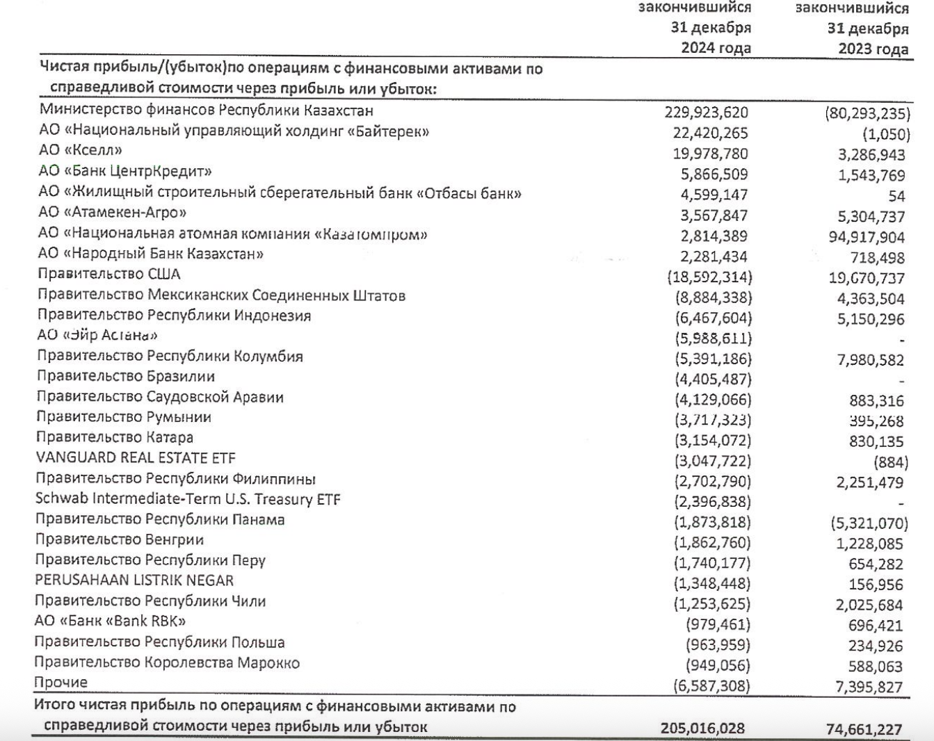 Главный плюс по прибыли показали бумаги Минфина РК: +229,9 млрд (годом ранее был большой минус).