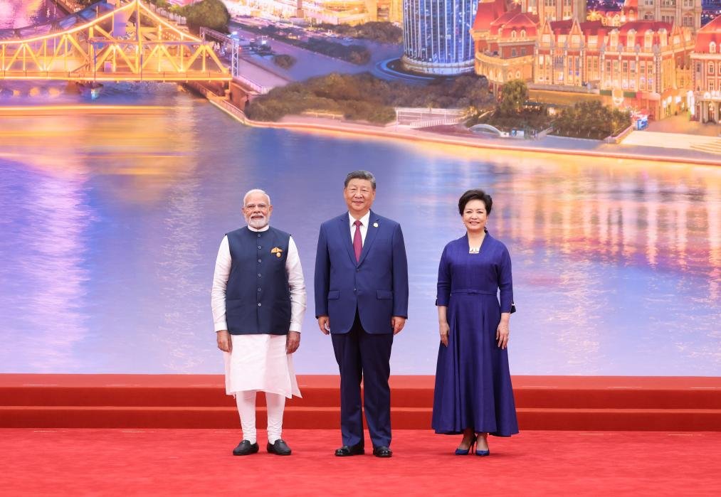 Премьер-министра Индии Нарендра Моди в Тяньцзине встретили представители китайского протокола, а затем лично Си Цзиньпин в выставочном комплексе Meijiang Convention Centre. Индийский лидер участвовал в фотосессии и торжественном приёме, где вместе с другими главами государств его приветствовали Си и Пэн Лиюань.