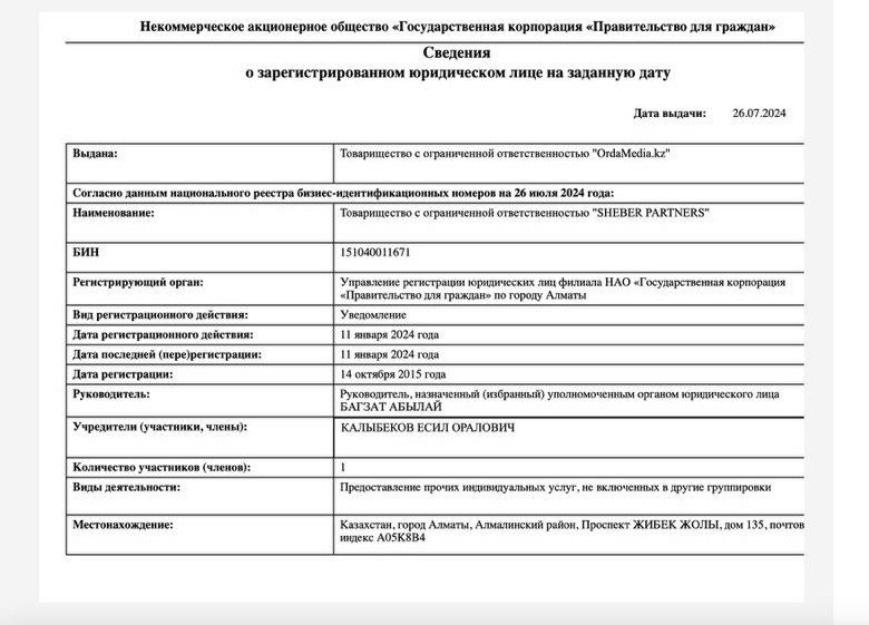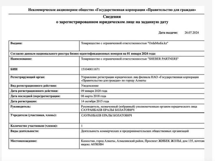 ТОО «SHEBERBUILD» — дочерняя компания SHEBER PARTNERS, руководителем и учредителем которой до начала этого года был депутат маслихата г. Алматы VIII созыва Ералы Болатович Сауранбаев.
