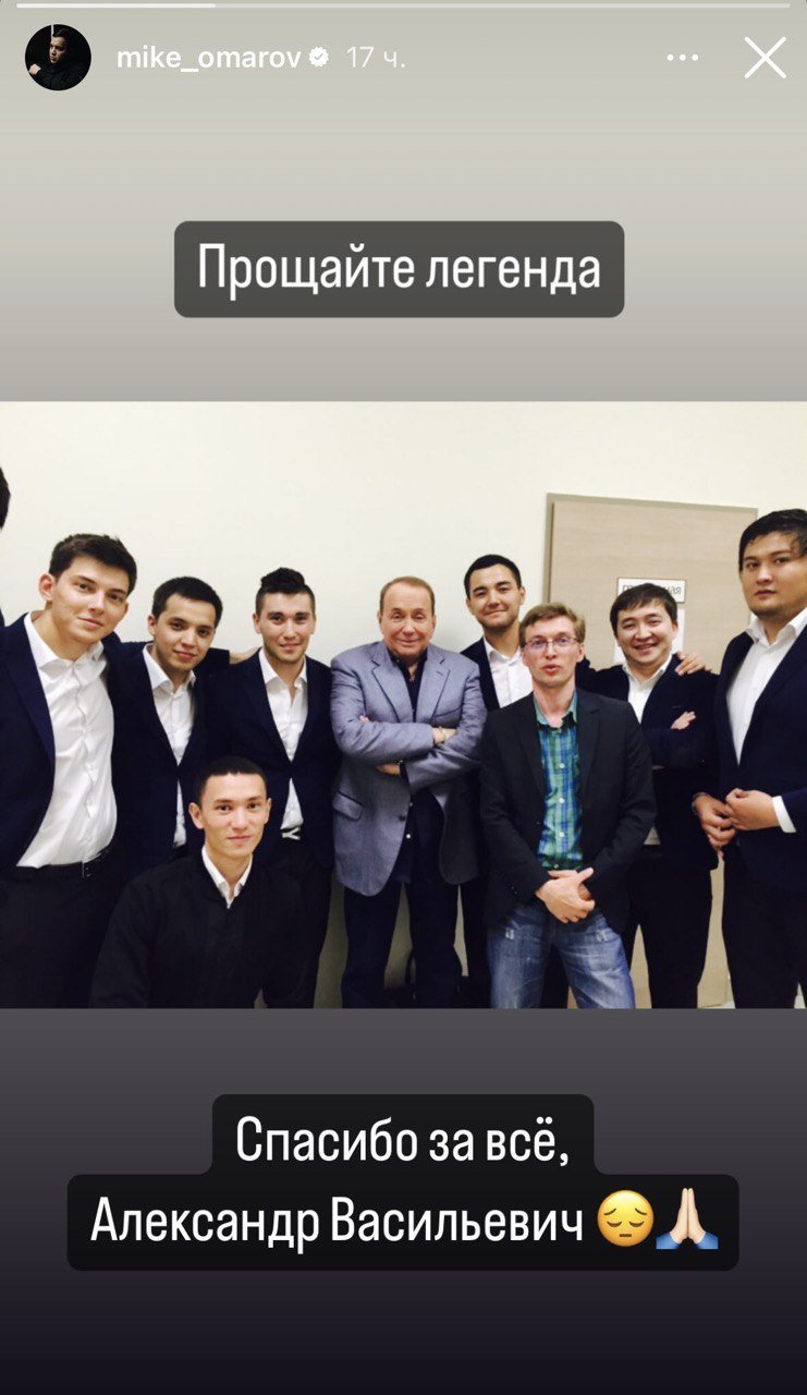 «Прощайте, легенда! Спасибо за всё, Александр Васильевич»,написал Омаров в истории Instagram