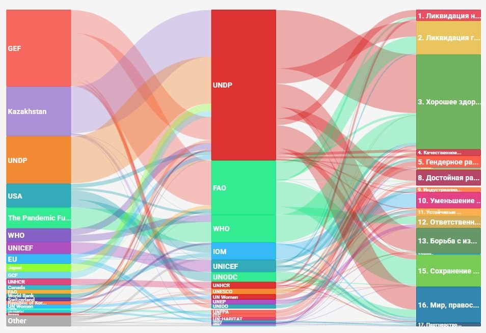 По данным платформы ООН в Казахстане, наибольший объём средств в рамках Целей устойчивого развития выделяется не на прямую денежную поддержку, а на сферы, связанные с качеством жизни. Так, около $13,9 млн приходится на направление «Хорошее здоровье и благополучие», $5,3 млн — на «Мир, правосудие и эффективные институты», ещё $4,8 млн — на «Ликвидацию голода».