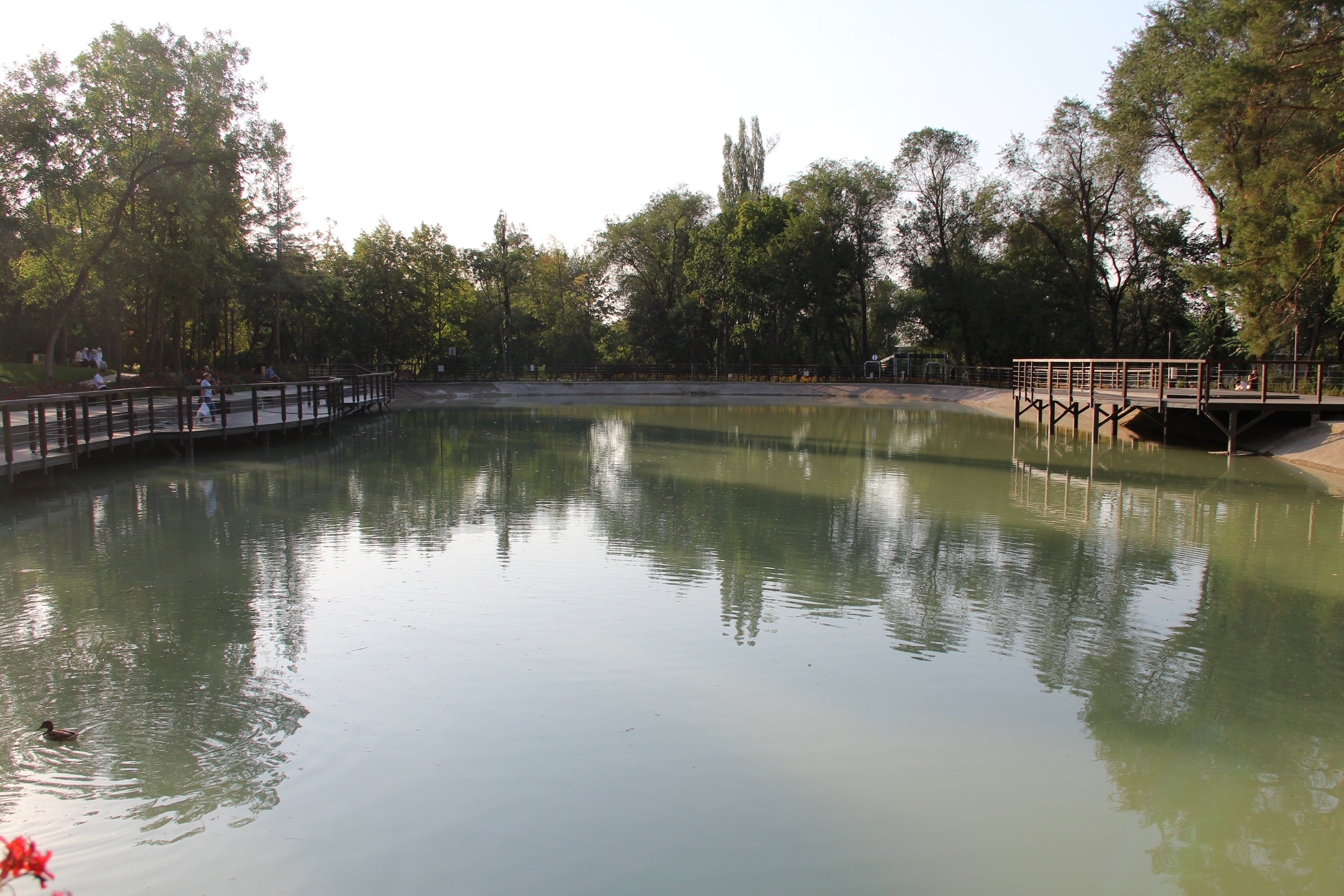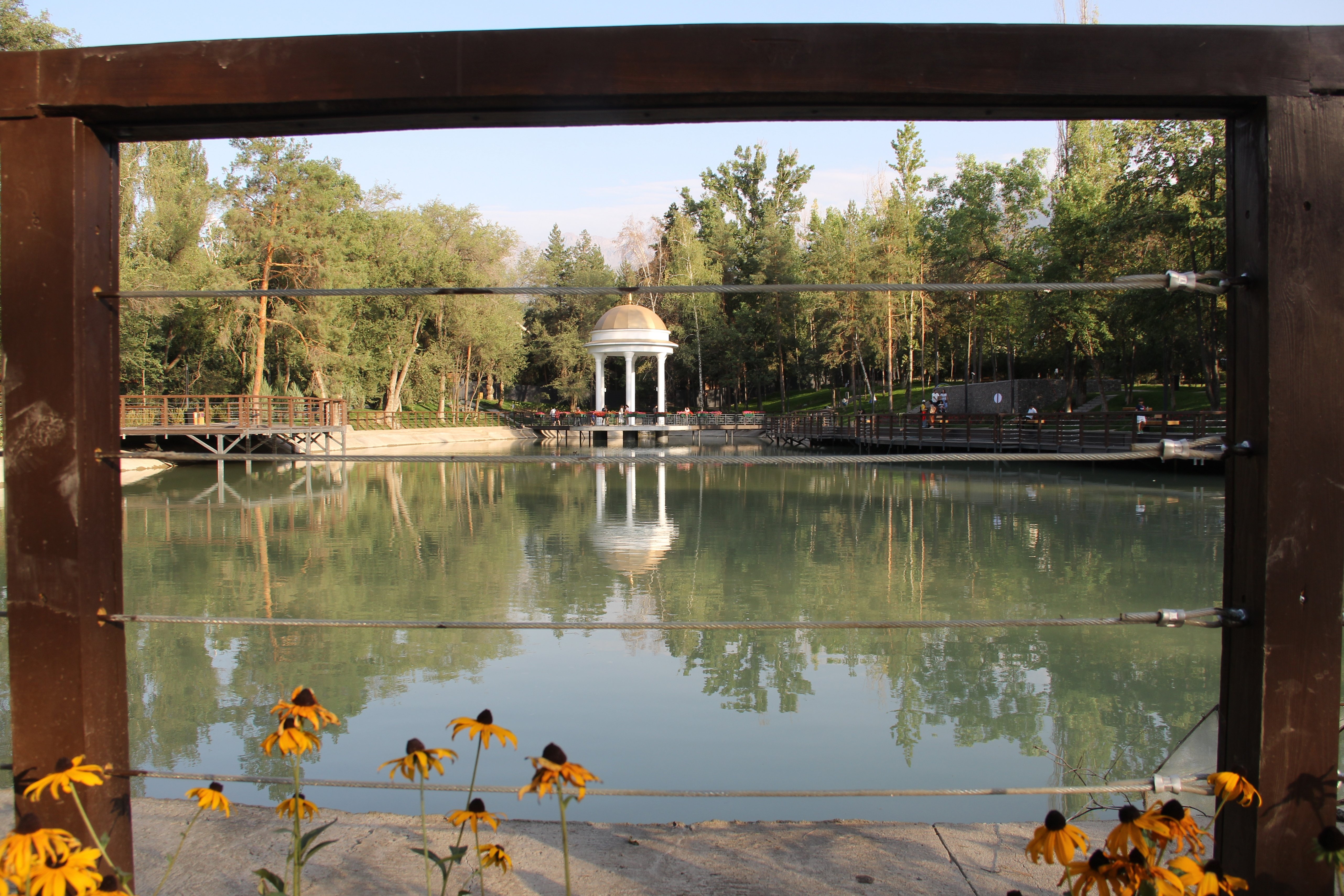 Сложно сделать теперь и самый открыточный кадр на пруд. Потому что со стороны, противоположной ротонде, сделали не только забор, но и разбили клумбу. Снимок, который стоит в самом начале текста, журналист Orda.kz делал, подняв камеру над собой. А, например, для ребёнка пруд с этой точки будет смотреться так: