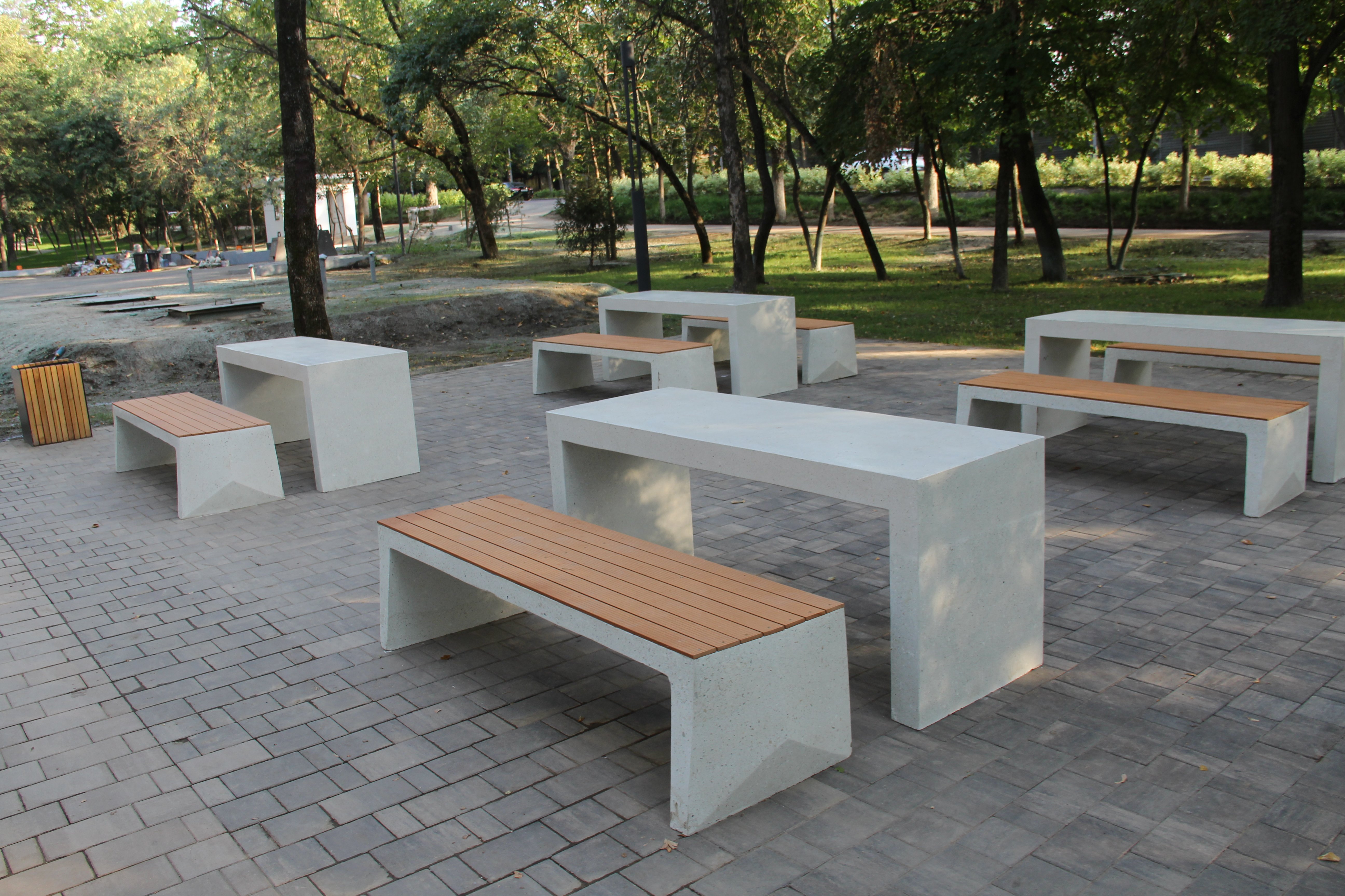 Есть столы — и теннисные, и не только. Те, что на фото ниже, пожалуй, можно использовать для перекусов.
