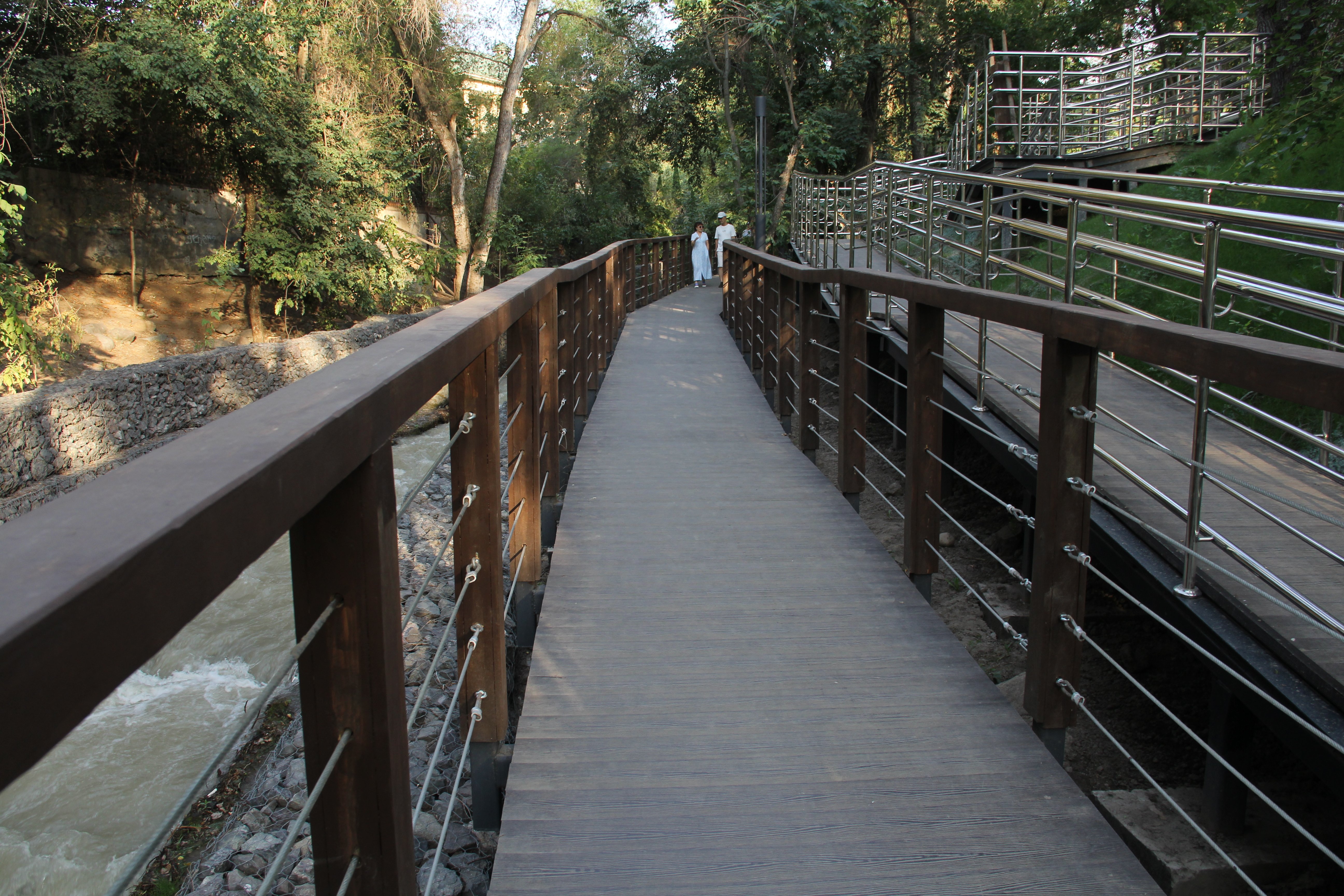 Кстати, если вы ожидаете, что обновления делались до улицы Омаровой, где начинается более популярный отрезок терренкура, то нет. Обновлённый участок заканчивается у небольшого мостика через Малую Алматинку. Возможно, это именно тот, что был на рендерах, но выглядит он иначе.