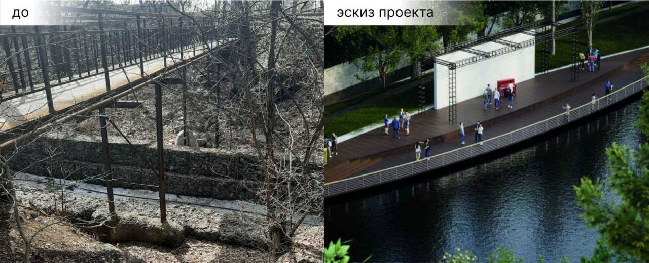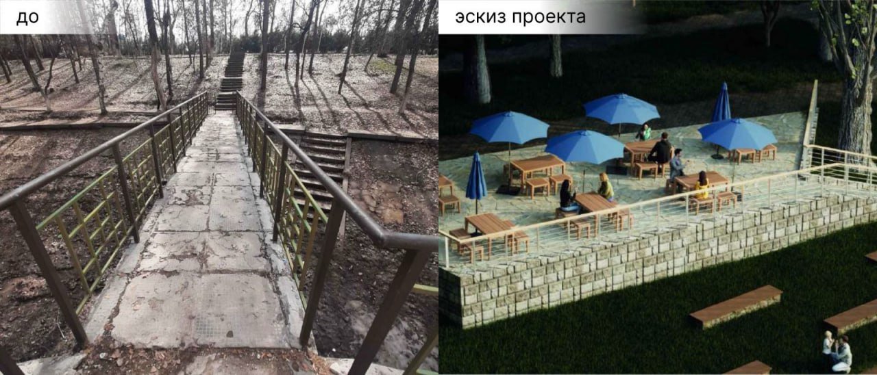 К релизу прикрепили картинки с в стиле «сейчас/будет» с фото тогдашнего состояния терренкура и рендеров из проекта. Вот они.