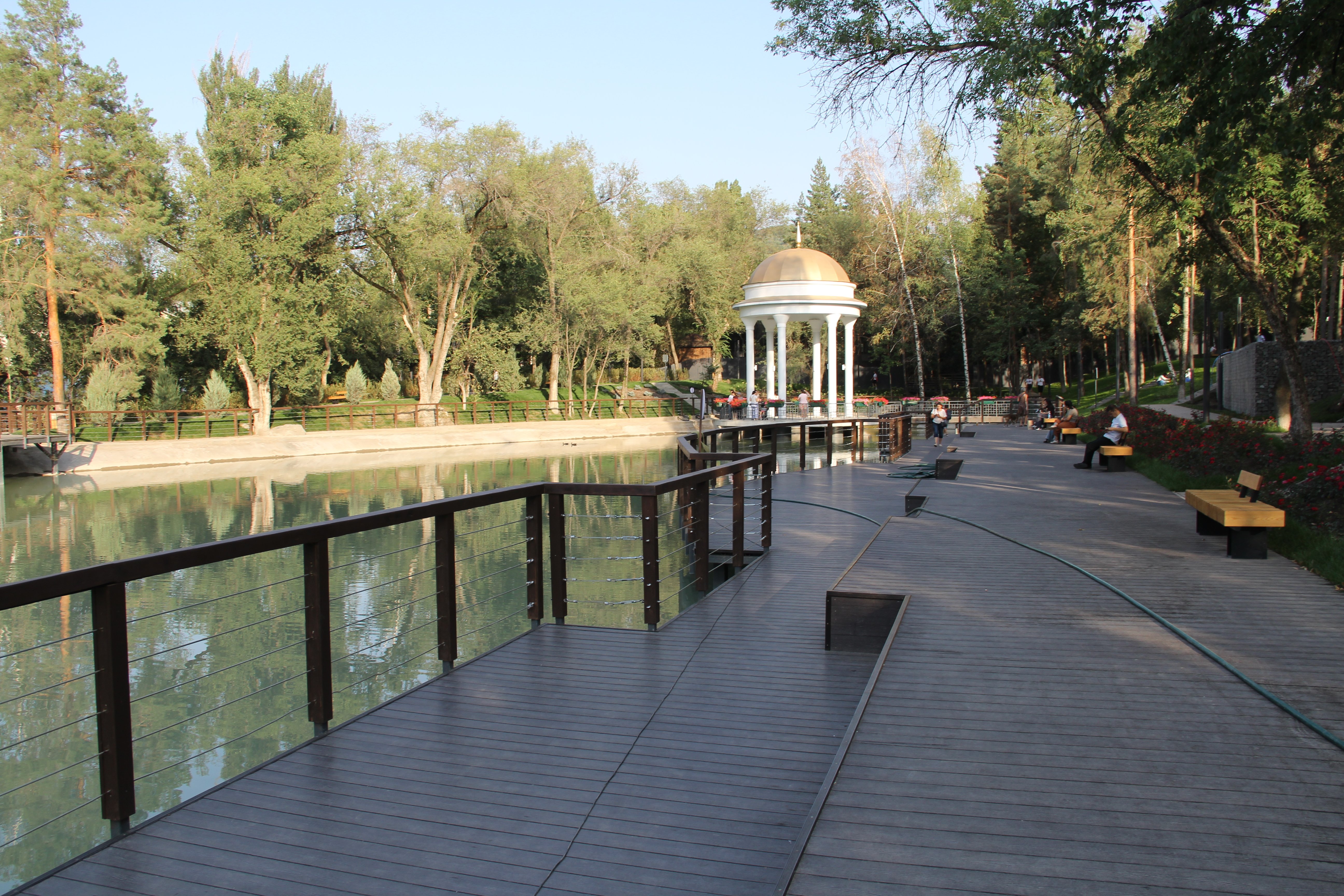 Сложно сделать теперь и самый открыточный кадр на пруд. Потому что со стороны, противоположной ротонде, сделали не только забор, но и разбили клумбу. Снимок, который стоит в самом начале текста, журналист Orda.kz делал, подняв камеру над собой. А, например, для ребёнка пруд с этой точки будет смотреться так: