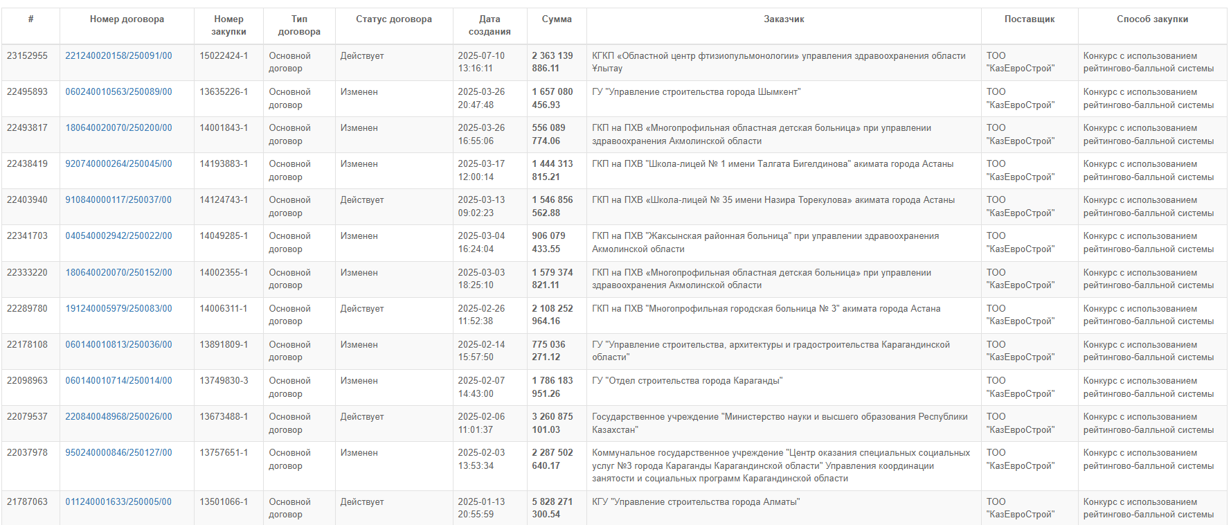 Немного о подрядчике. ТОО «КазЕвроСтрой» зарегистрировано в Астане и специализируется на строительных и ремонтных работах. Компания активно работает по госконтрактам в разных концах страны — от Туркестана до Павлодара.