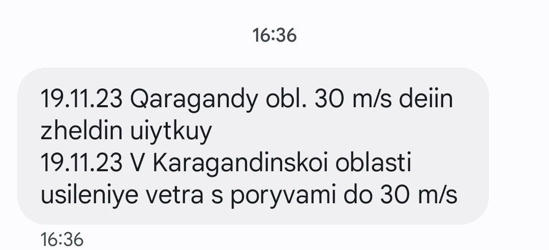 Ночью на севере, востоке Акмолинской, на севере Карагандинской, на западе, юге, востоке Павлодарской областей ожидается очень сильный ветер 30 м/с и более.
