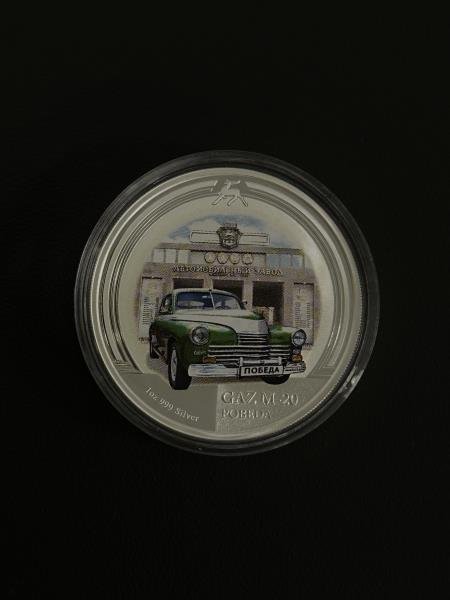 Сувенирные монеты с автомобилями GAZ M-1 и GAZ M-20 ушли за 59,5 тыс. тенге. Они выполнены из серебра 925 пробы, выпущены ограниченным тиражом в 2008 году.